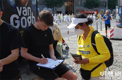 他从真相资料上已经读到,中共从九九年开始的对法轮功的迫害已经持续了二十二年了:“(迫害)让我很感伤,我会帮助一起制止这场迫害,我也要帮助他们(法轮功学员)一起游行反抗迫害,征集签名。”