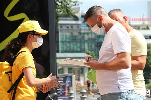“中共从活人身上摘取器官实在是太过分了,这是无法忍受的,所以我签名。”克勒莫有些急促的告诉记者。他之前没有听说过法轮功,不知道当前还有中共迫害法轮功的存在。他认为法轮功学员的付出非常好:“他们(法轮功学员)在一起为此(制止迫害)付出自己的时间,而制止中共迫害是非常重要的,所以我觉得游行很好。”