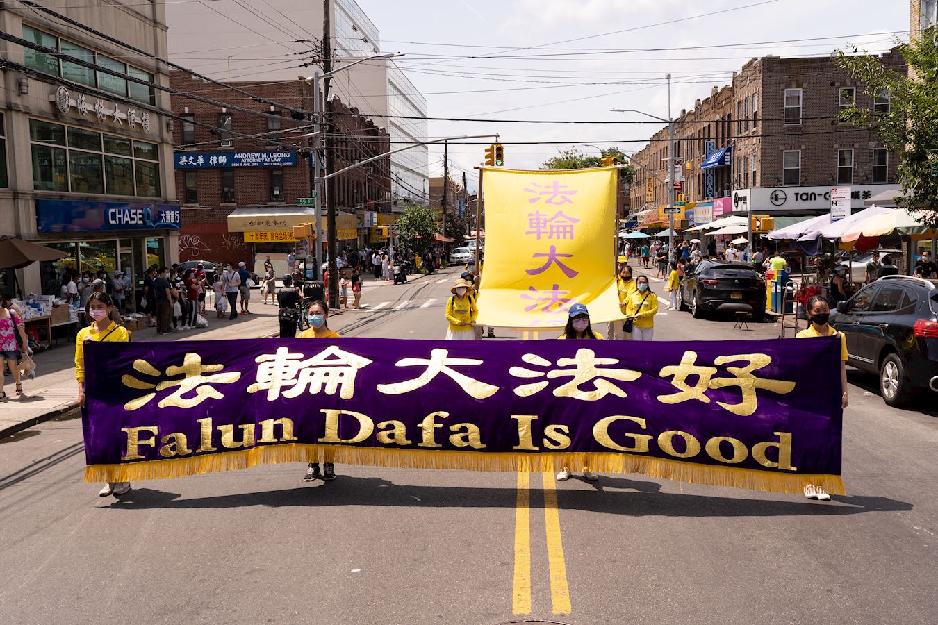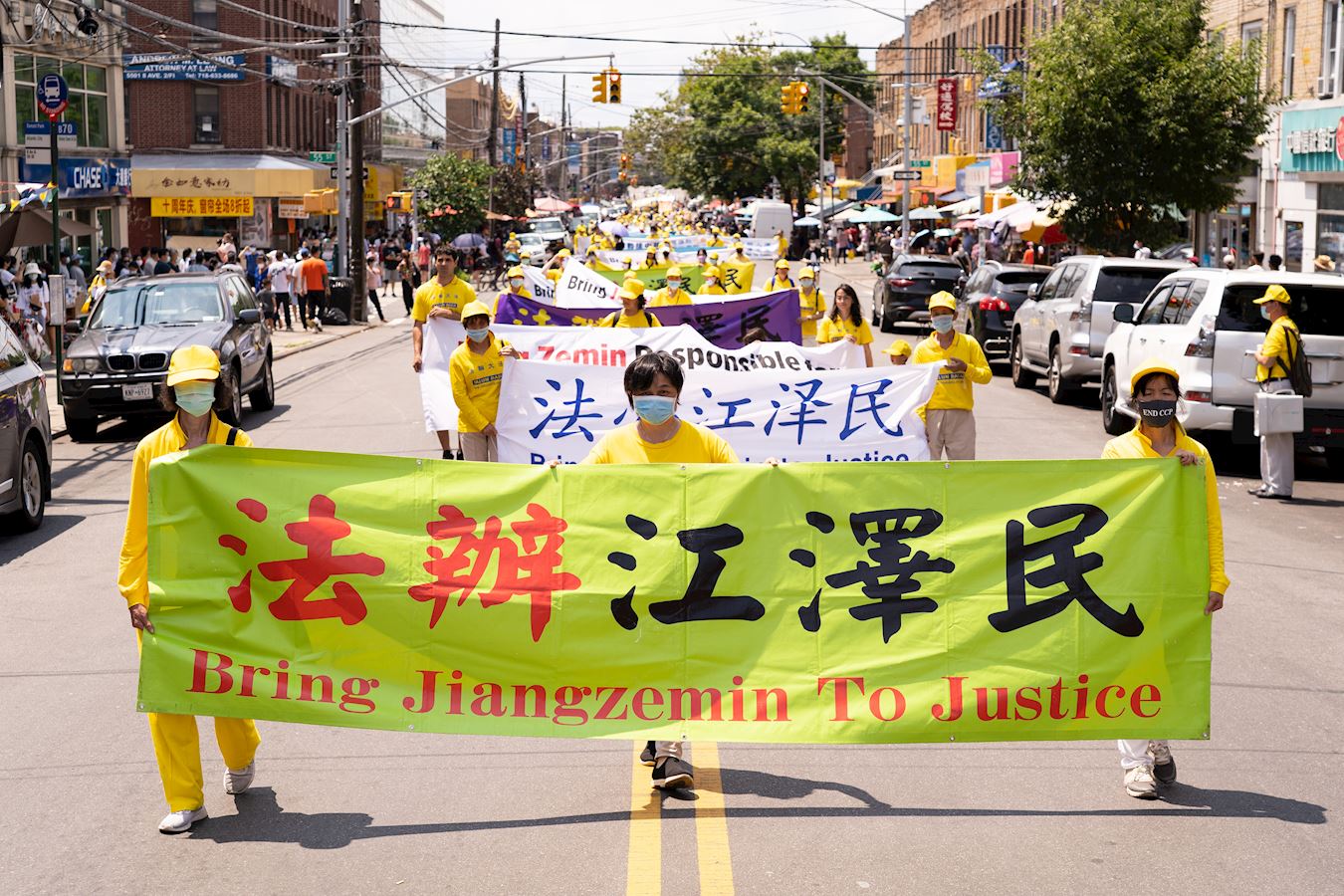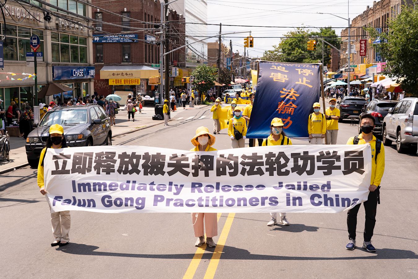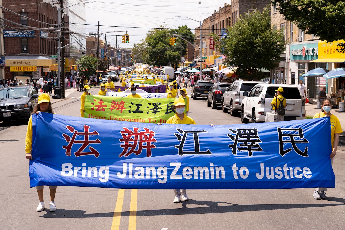 【明慧网二零二一年七月二十日】今年是法轮功反迫害二十二周年,二零二一年七月十八日,纽约地区部份法轮功学员近千人在纽约的第三大华人社区——布鲁克林(又称布碌仑)第八大道游行,希望世人赶紧了解真相,同时呼吁曾加入中共党团队组织的中国人三退保平安。