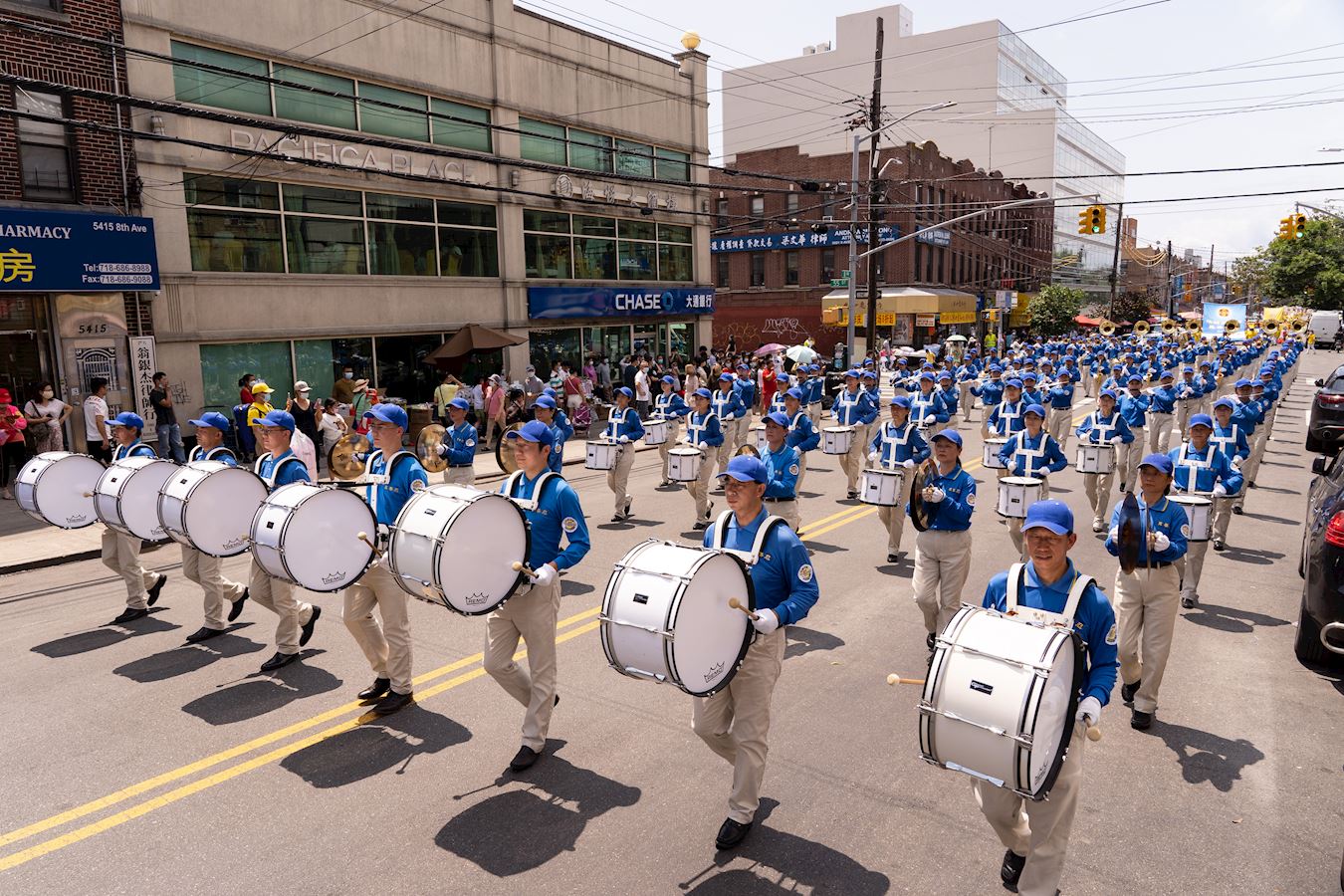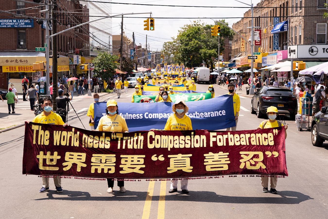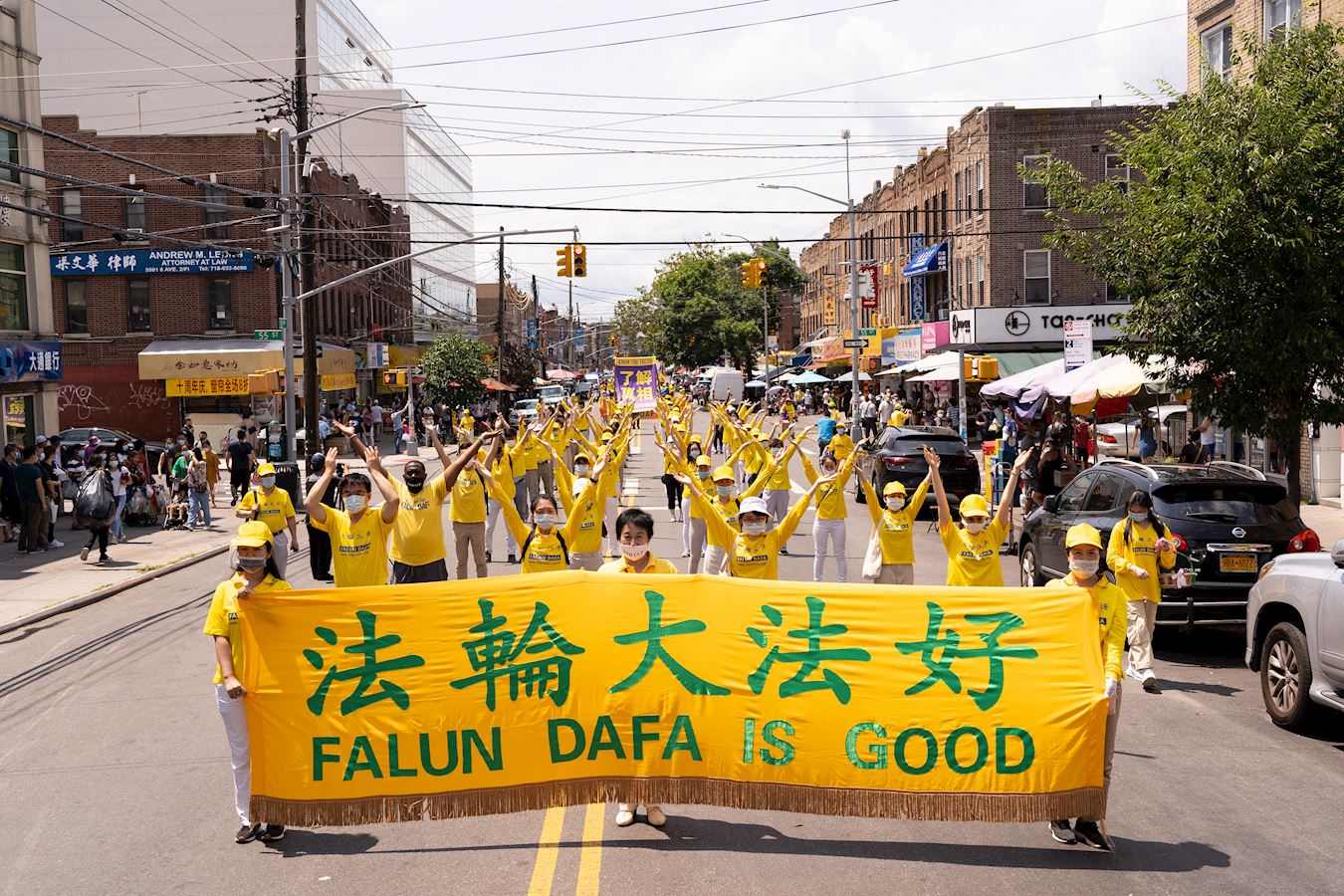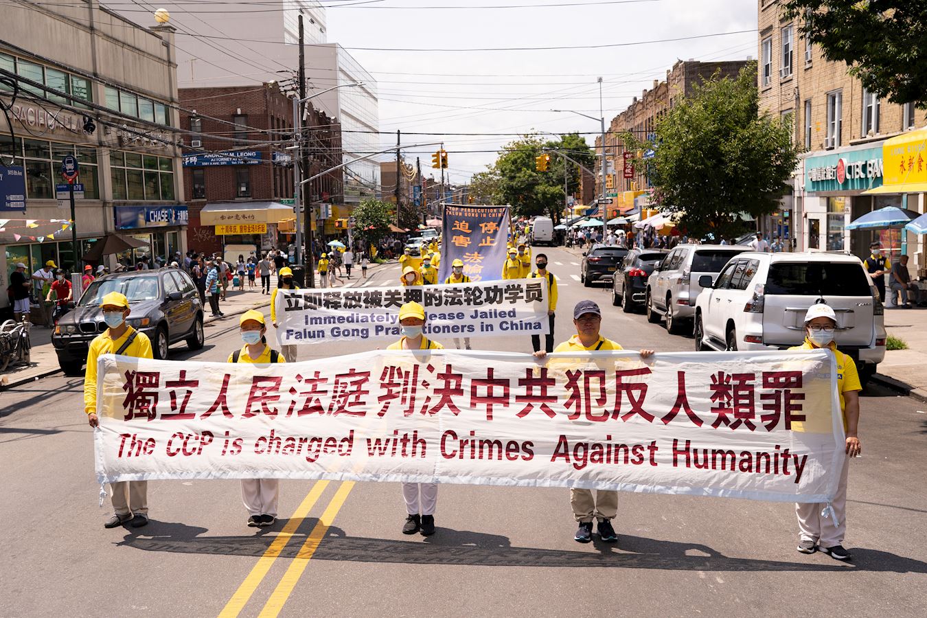 【明慧网二零二一年七月二十日】今年是法轮功反迫害二十二周年,二零二一年七月十八日,纽约地区部份法轮功学员近千人在纽约的第三大华人社区——布鲁克林(又称布碌仑)第八大道游行,希望世人赶紧了解真相,同时呼吁曾加入中共党团队组织的中国人三退保平安。