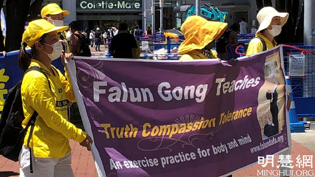 【明慧网二零二一年七月二十一日】日本法轮功学员于二零二一年七月十八日,在神奈川县横滨市举行反游行和烛光夜悼活动,呼唤人们的正义和良知,呼吁共同解体危害世界的中共邪恶政权,制止长达二十二年的对法轮功学员的迫害。很多看到游行的民众表示是时候结束中共统治、停止迫害法轮功了。