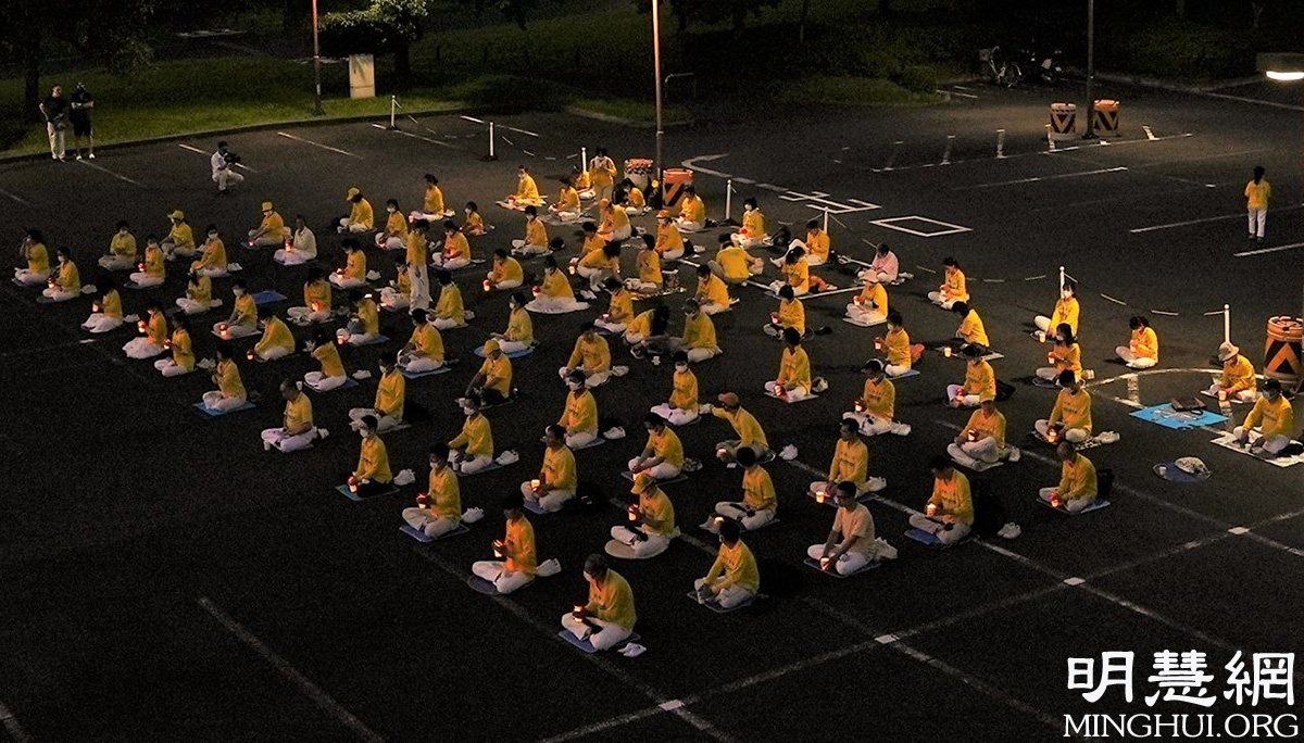 夜幕降临之后,学员们来到位于东京市中心的大岛小松川公园的广场,举行烛光悼念活动,悼念在中国大陆因坚持信仰被中共迫害致死的法轮功学员,呼吁世人关注,共同制止中共的恶行。路过的行人看到学员们整齐安静的活动现场,感到很特别,主动了解法轮功真相,并鼓励学员们坚持下去。
