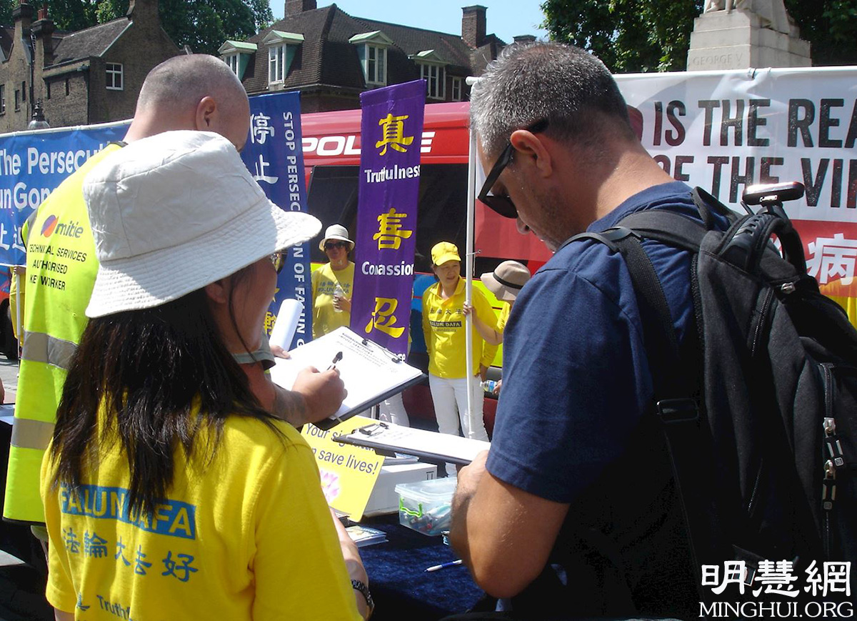 “我读过一些报告,这些报告给我的印象是人们正在做出回应。我今天来到这里的原因之一,是因为我的一些选民是法轮功学员,她们有不同的感受,她们不得不离开中国来到英国,希望她们的声音能够被听到。所以我今天来到这里给予支持,并很高兴有机会了解更多。