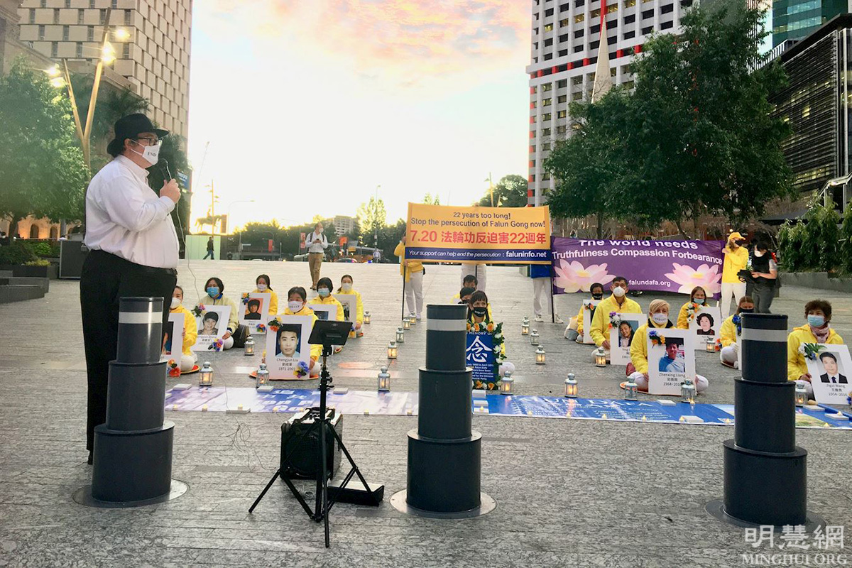 '图4:澳洲资深医师在布伊在烛光悼念活动上发言'