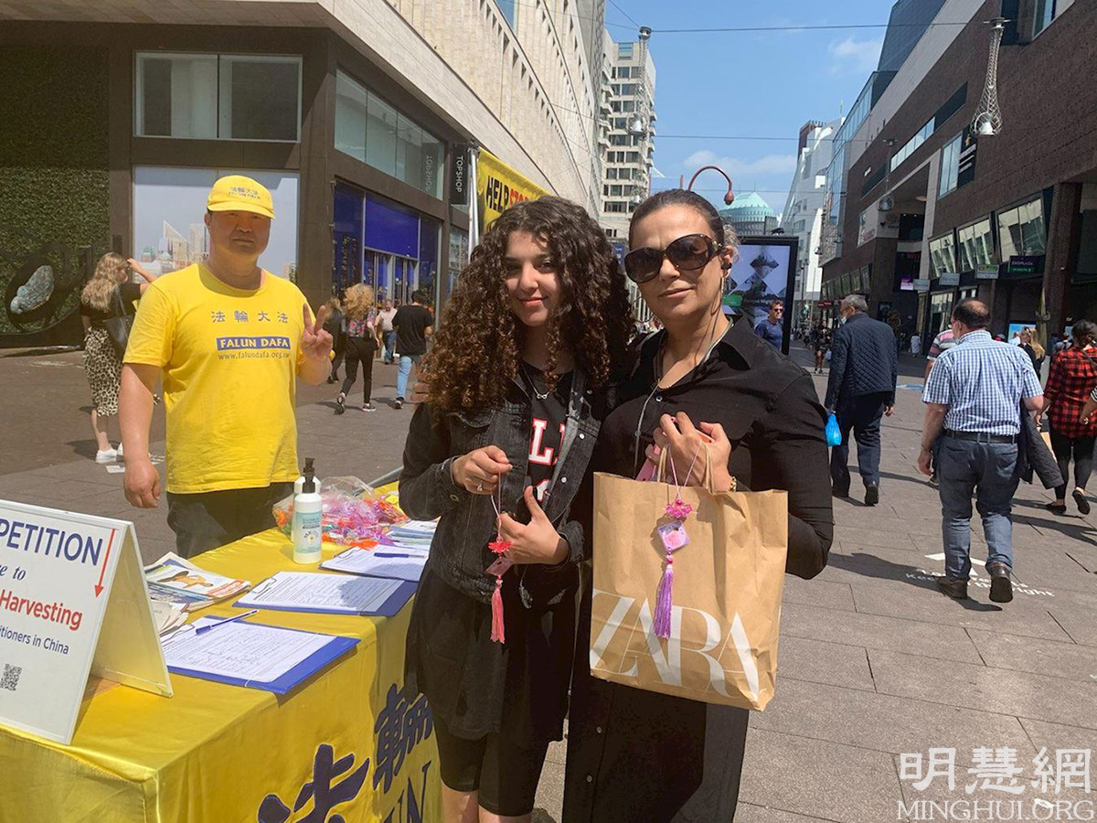 拉夫纳(Rafna)女士看到几位法轮功学员的功法演示表示:“你们的锻炼方法看起来很平静。”一位法轮功学员向她讲解了法轮功在中国遭到迫害,甚至活摘器官。拉夫纳女士听了非常震惊:“我真的没想到,这很糟糕。 我真的不认为这是可能的。你(中共)怎么能对人这样做? 我真的无话可说。”