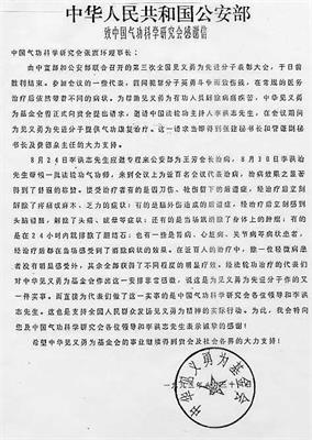 中华人民共和国公安部 中国气功科学研究会感谢信