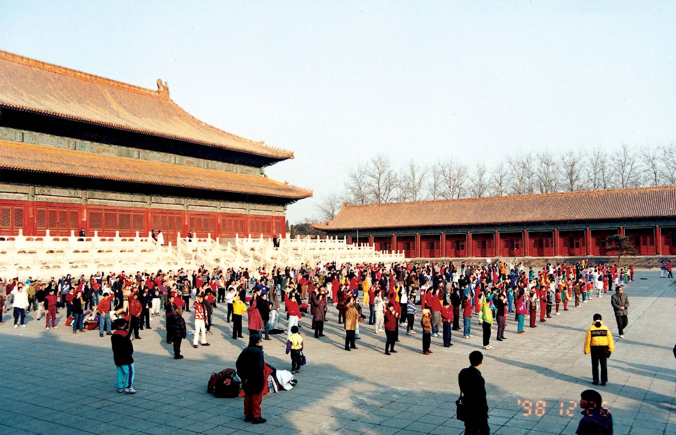李洪志师父在北京法轮功国际法会上讲法。 北京地坛公园方泽轩(1996-11-2)
