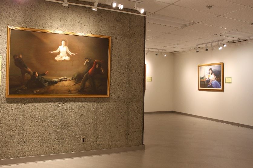 此次画展共展出了二十三幅精心挑选的作品,其中包含了历届油画大赛的获奖佳作以及加拿大画家的作品。画廊的画家提供了精心的布展设计,一幅幅精美的作品在专业的灯光映衬下,金碧辉煌。真、善、忍的博大精深的内涵,与成熟完善的传统油画技巧的结合使画作散发出神圣庄严、超凡脱俗的美和慈悲纯正的能量,伴随着《济世》、《普度》的柔和音乐,直接打入内心的深处,唤醒人们的良知善念。