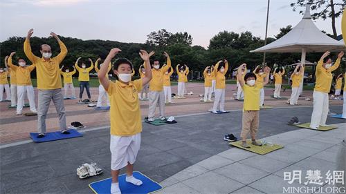 ![]() 图4:釜山法轮功学员集体炼功。 |
