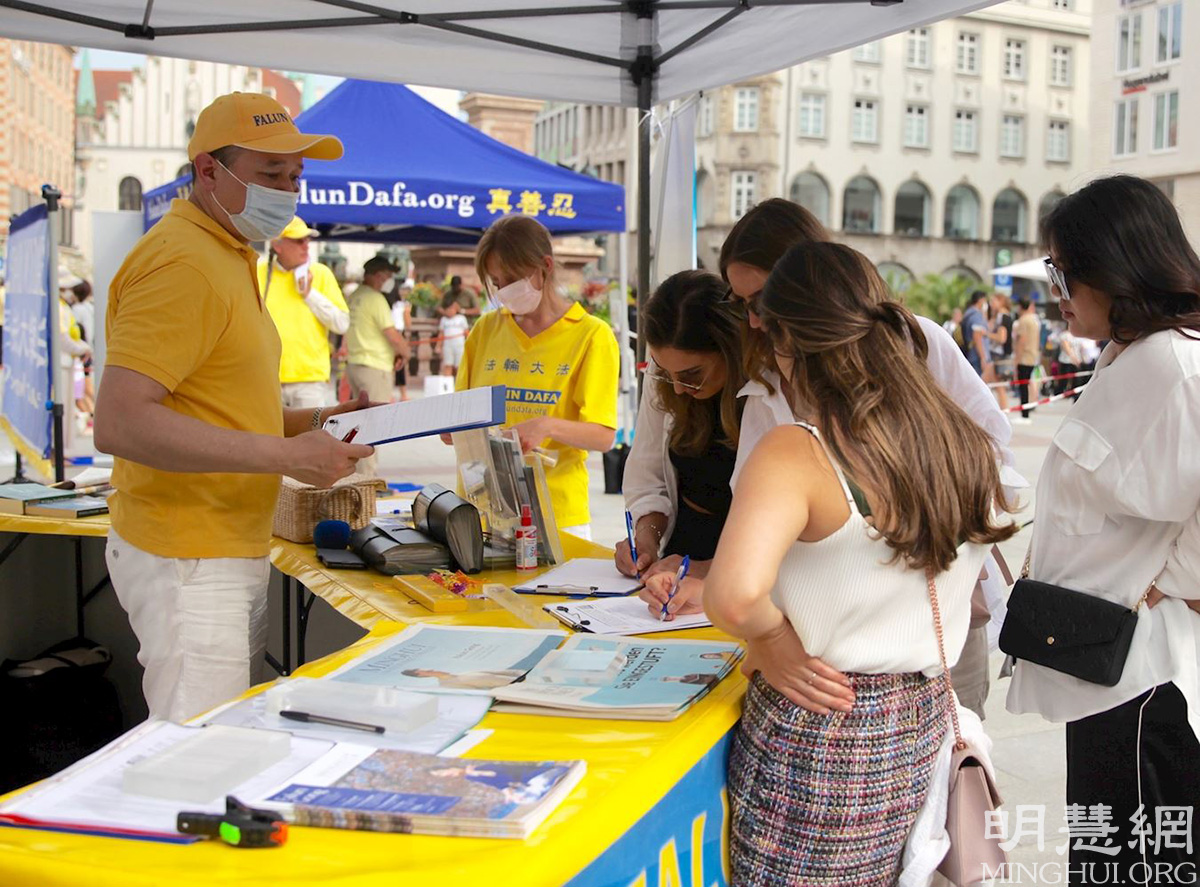 ![]() 图1:二零二一年七月二十四日,法轮功学员在德国巴伐利亚州首府慕尼黑举办信息日,图为民众踊跃签名声援法轮功学员反迫害。 |