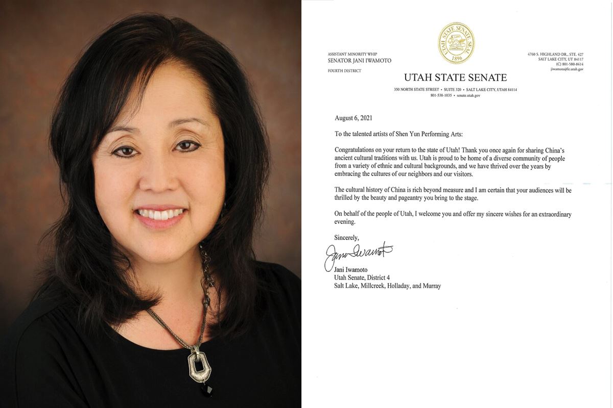 在神韵演出前,犹他州参议员珍妮·岩本(Jani Iwamoto)给演出主办方发贺信,代表犹他州人民欢迎神韵艺术团。