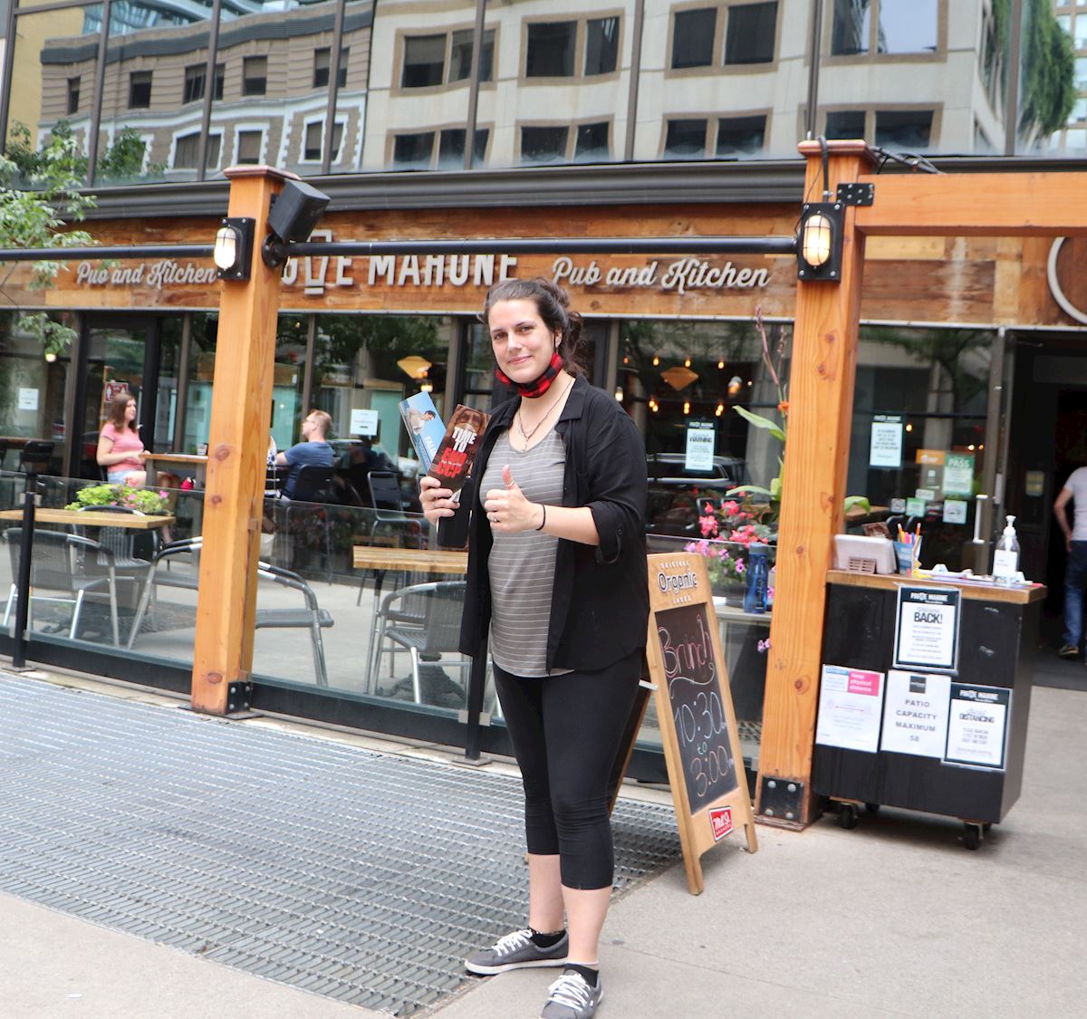 图12:多伦多市中心的一家高级西餐馆的经理珊姆(Sam)感谢法轮功学员在这个特殊时期给人们带来美好。”