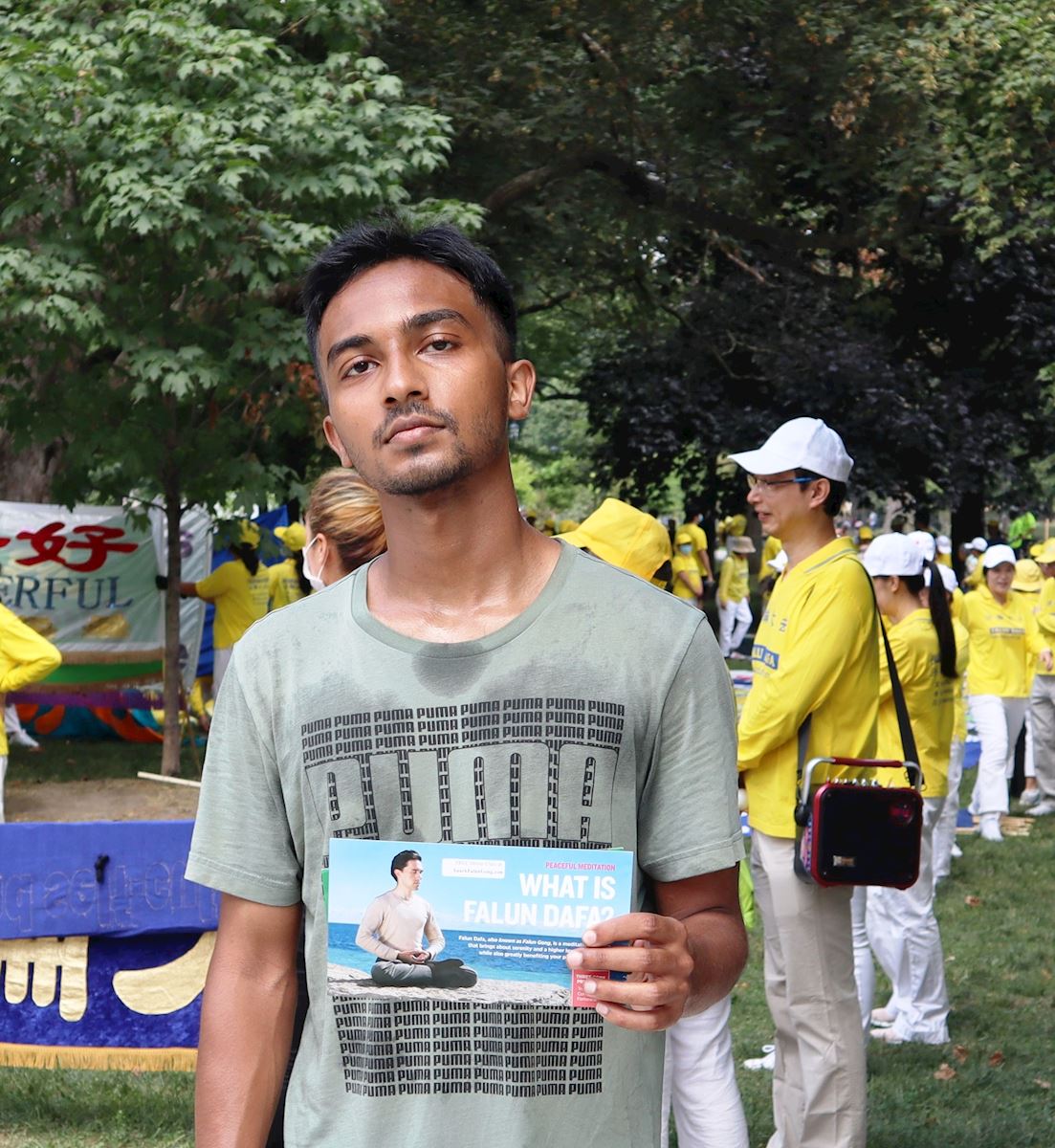来自孟加拉国的韩(Khan)先生说:“我认为中共不应该迫害这些法轮功修炼者,一看就知道他们都是内心纯净,并且能够认清正道的人。我也学习过打坐,当我在打坐时,我感到自己的思想很集中。”