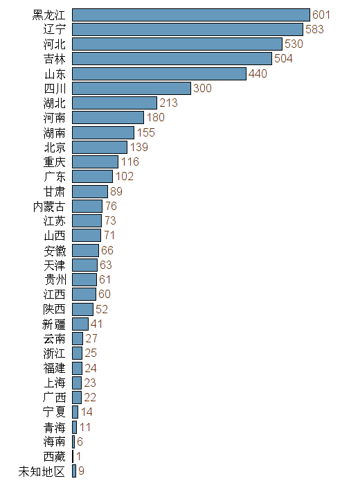 ![]() 被迫害致死的法轮功学员人数按省市分布 |