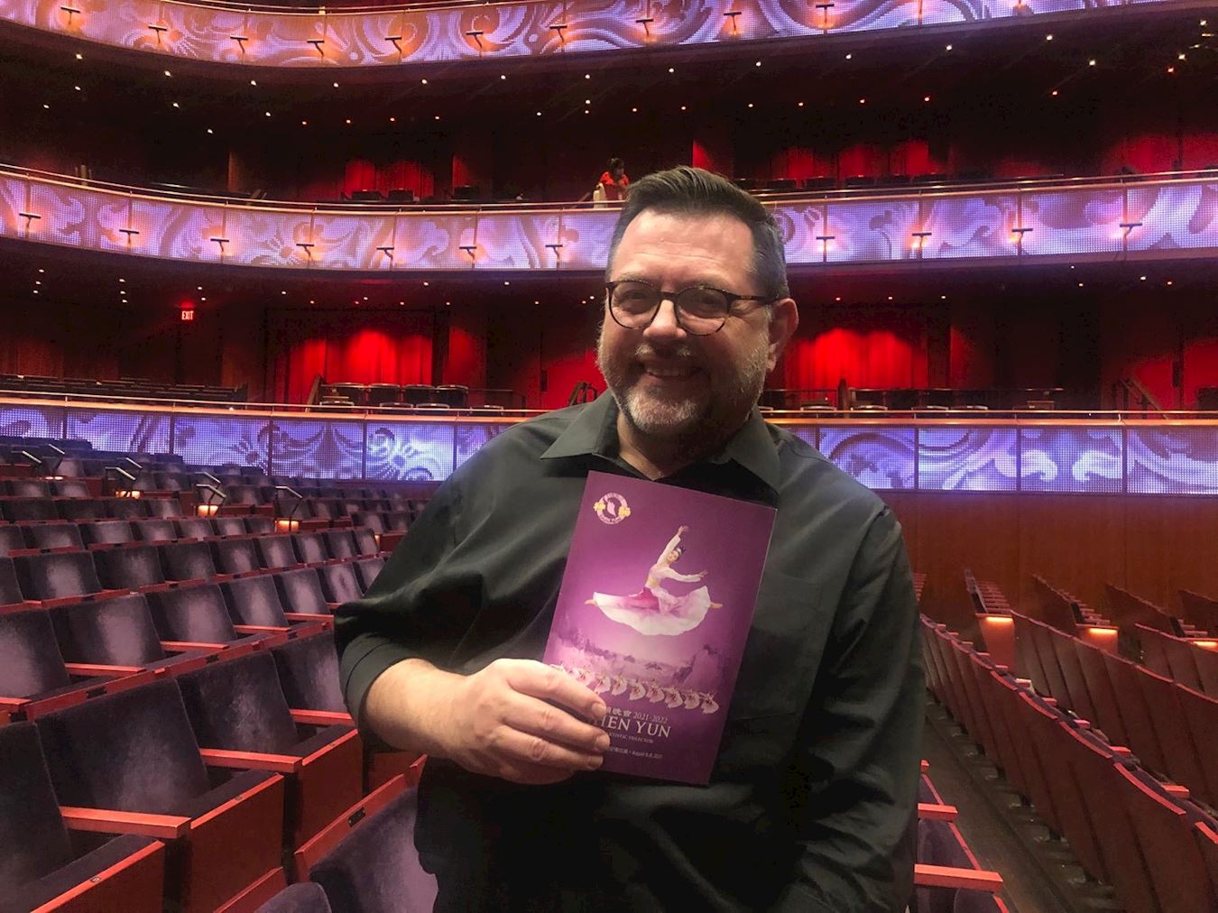 ![]() 图3:二零二一年八月六日晚,资深舞台艺术总监蒂姆。赫奇佩斯(Tim Hedgepeth)观赏了神韵世界艺术团在圣安东尼奥市的演出。 |