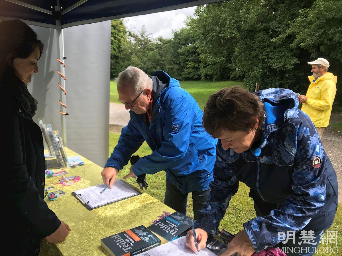有不少民众非常支持法轮功的活动,他们告诉法轮功学员说,你们做的太好了,你们在这里我们很高兴。也有在德国居住的香港和日本人签名后表示,她们很清楚中共的恶行,也感谢法轮功学员的努力,希望法轮功学员加油。