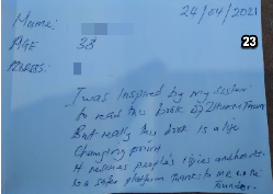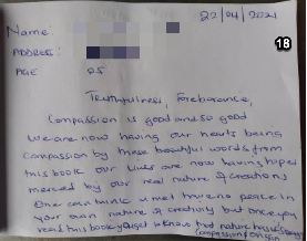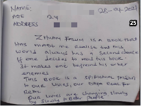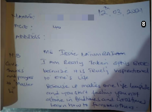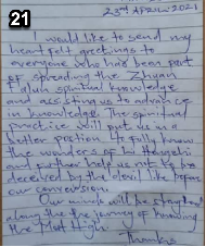 淳朴的当地人在拜读了《转法轮》之后,把心里的话记录在纸条上,交给詹姆士,感谢法轮大法给予他们的奇迹。每张纸条上收录的是一个生命,带动一个家庭乃至一个社区向善的故事。詹姆士收到的反馈很多,由于篇幅的关系,仅收录2021年1月至6月间的部份反馈。