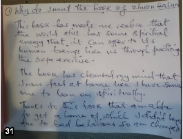 这本书让我意识到在人类以外还有神的存在。我曾经酗酒,但自从读了这本书并开始炼功,我已经战胜了酒瘾,我的身体也完全变了。我觉得(身体)很有力量,现在可以做很多我以前从没做过的事。