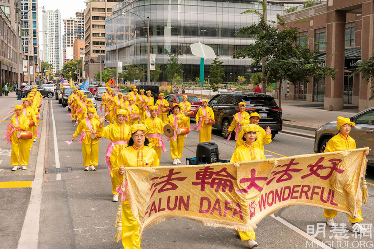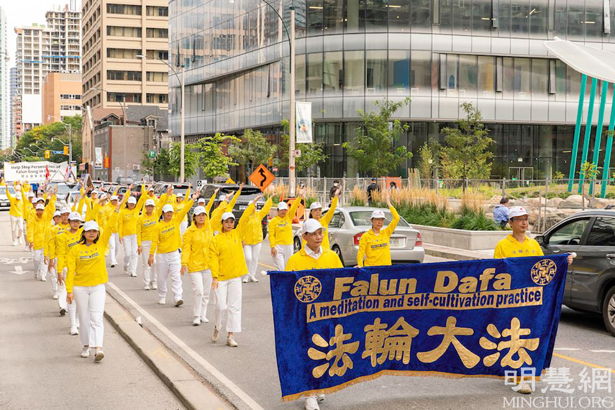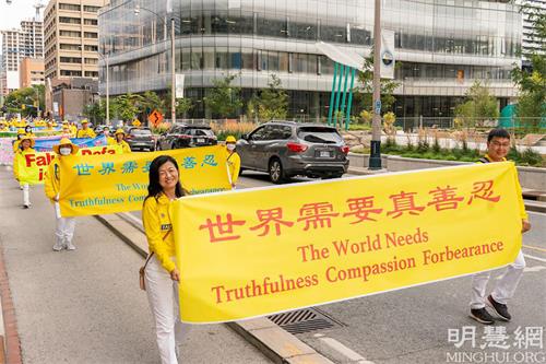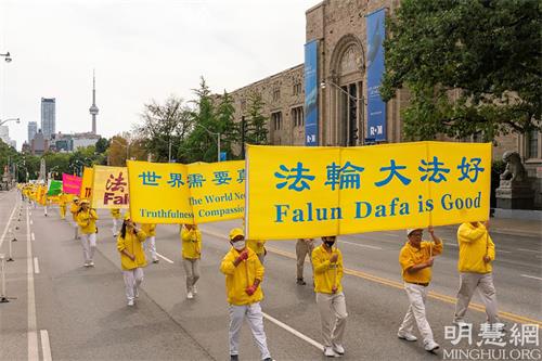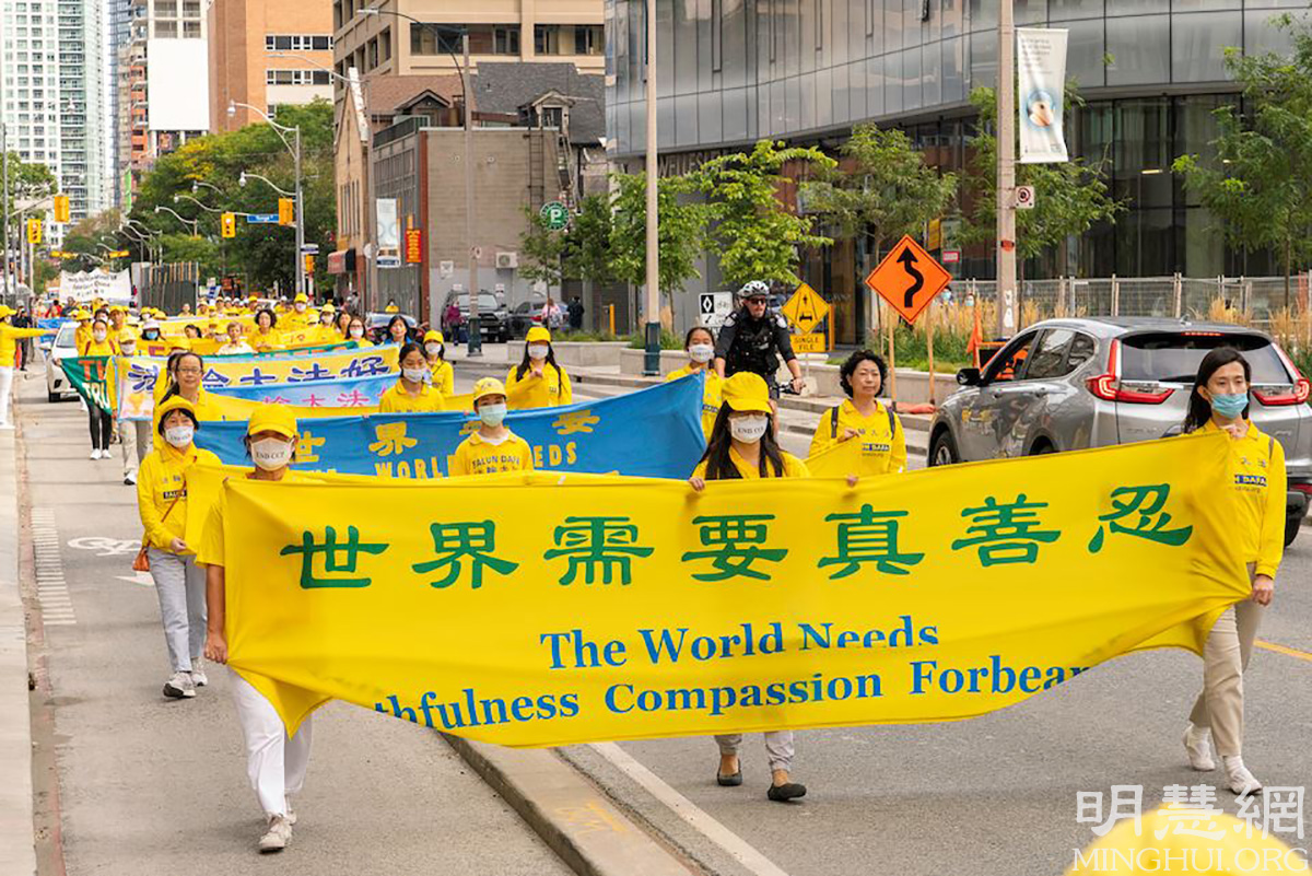 '图1~20:九月二十五日,多伦多法轮功学员在市中心举行一个月一次的主题为“弘扬法轮大法 抛弃中共保平安”的大游行。'