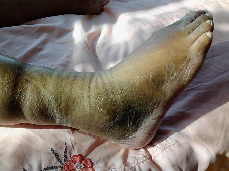![]() 图2~3:出狱时下肢皮肤都是坏死的,呈黑色的 |