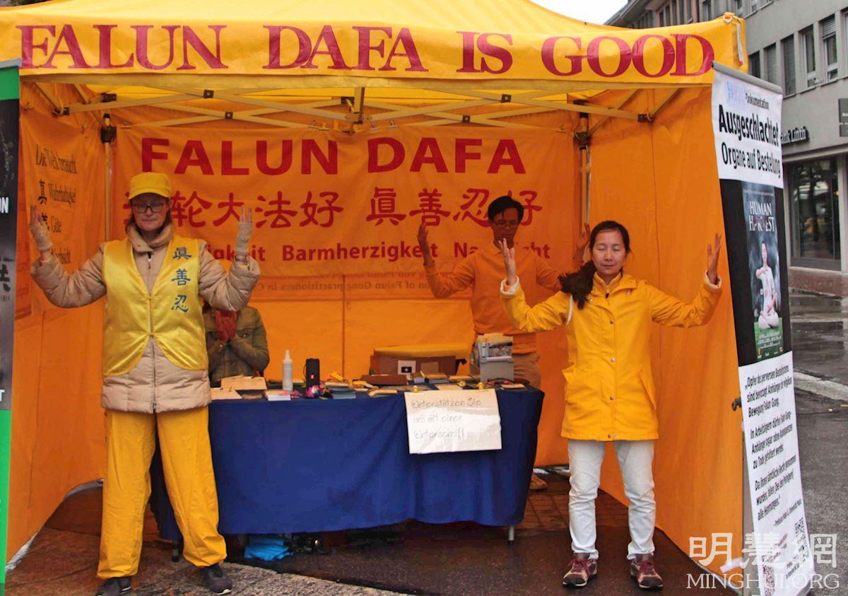 ![]() 图1:法轮功学员在温特图尔市内设立真相点,传播法轮功真相。 |