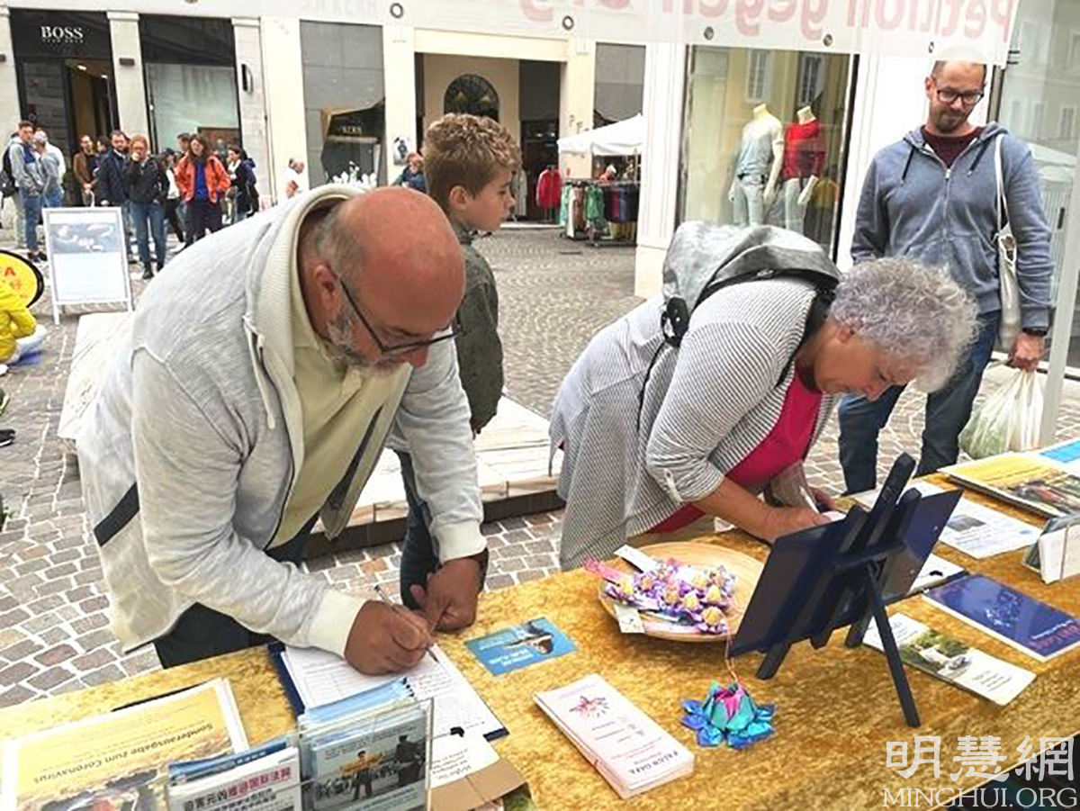 ![]() 图3:林茨的市民和游客签名反迫害。 |