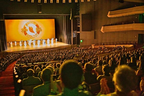 ![]() 图4:二零二二年一月七日至九日, 神韵巡回艺术团在美国德州奥斯汀朗氏表演艺术中心(The Long Center for the Performing Arts)三天五场的演出,其中包括演出二周前才加的一场演出,场场爆满,期盼已久的观众感叹“神韵是精美超凡的杰作”,艺术家们“都历经千锤百炼而无可挑剔”。图为一月八日晚演出谢幕照。(大纪元) |
