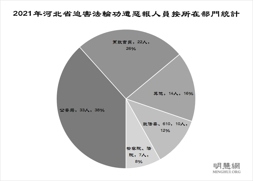 图2:2021年河北省迫害法轮功遭恶报人员按所在部门统计
