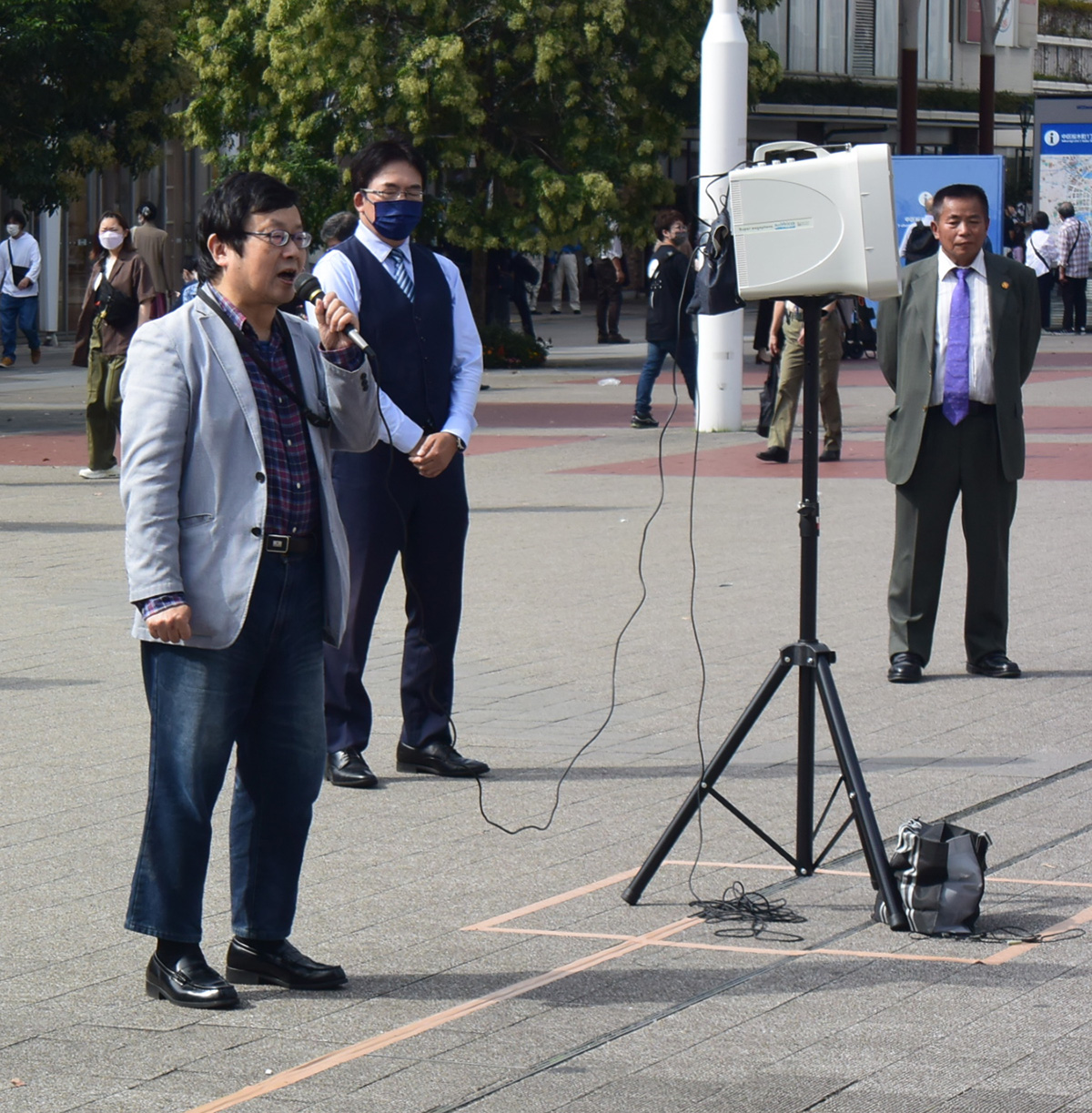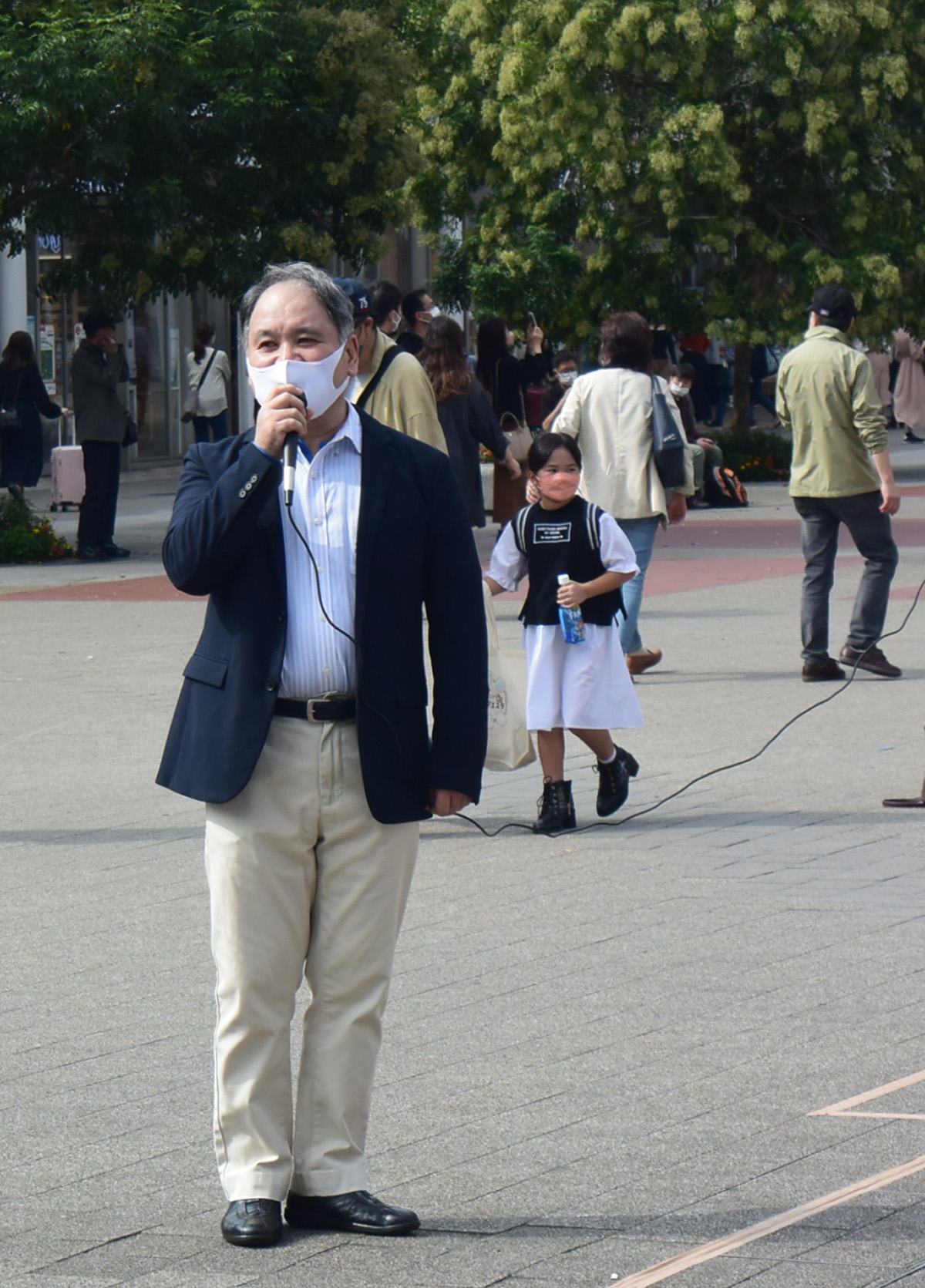 他为法轮功学员们加油打气道:“信仰真善忍的法轮功学员们此时此刻也在中国大陆经受着残酷的迫害,而迫害已经持续了二十多年了。我们要把这些告诉日本的民众。不要觉得中共很强大反抗也没用。我相信你们所做的点滴定会星火燎原。我也会一直支持你们!”