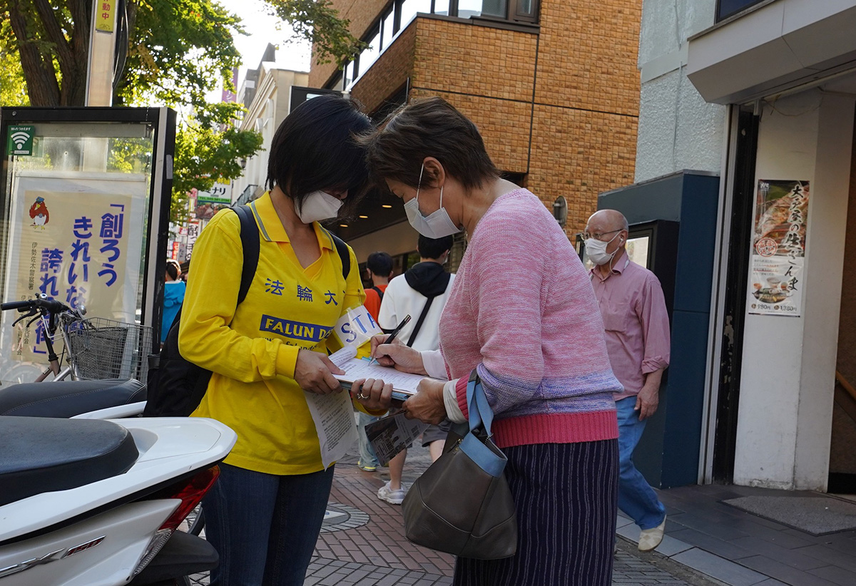 从鹿儿岛县和孙女一起来横滨的山下女士,听完法轮功被迫害的真相后说:“完全不知道法轮功正在经受着这样的迫害,回去后我会好好了解。能在这里听到也许是一种缘份。”