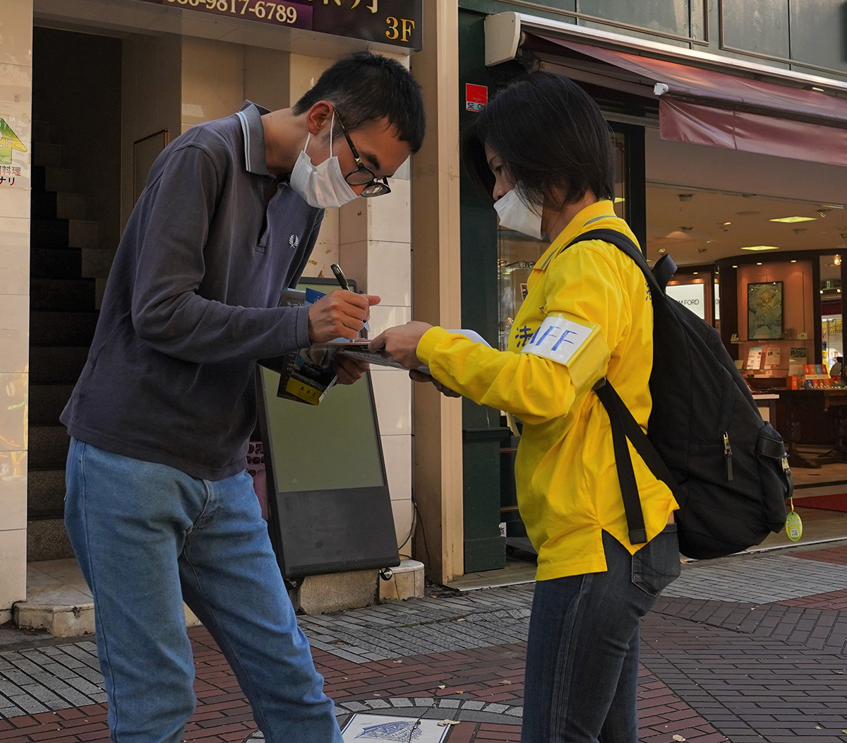 住在横滨的佐藤先生说:“我知道活摘的事。我去台湾工作时也看到过游行,那时我就知道了法轮功被迫害的事实。必须要对抗中共,大家齐心合力,一起加油。”