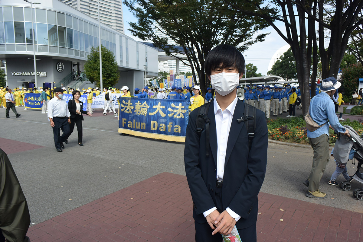 同样来自横滨参加活动的实方先生说:“我在新宿站见过法轮功学员的征签活动,那时拿了传单。游行是很好的方式,希望你们能传播的更广。”