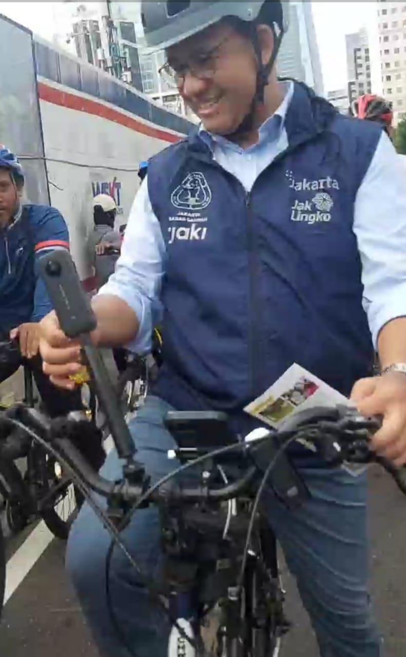 在当天的活动中,雅加达省长和一些省市政府官员的自行车队伍,经过了法轮大法炼功点。身着仙女服装的学员向省长和政要们发送了真相传单,和写着“法轮大法好,真善忍好”的莲花。省长阿尼斯满脸微笑接受了莲花并向学员道谢。