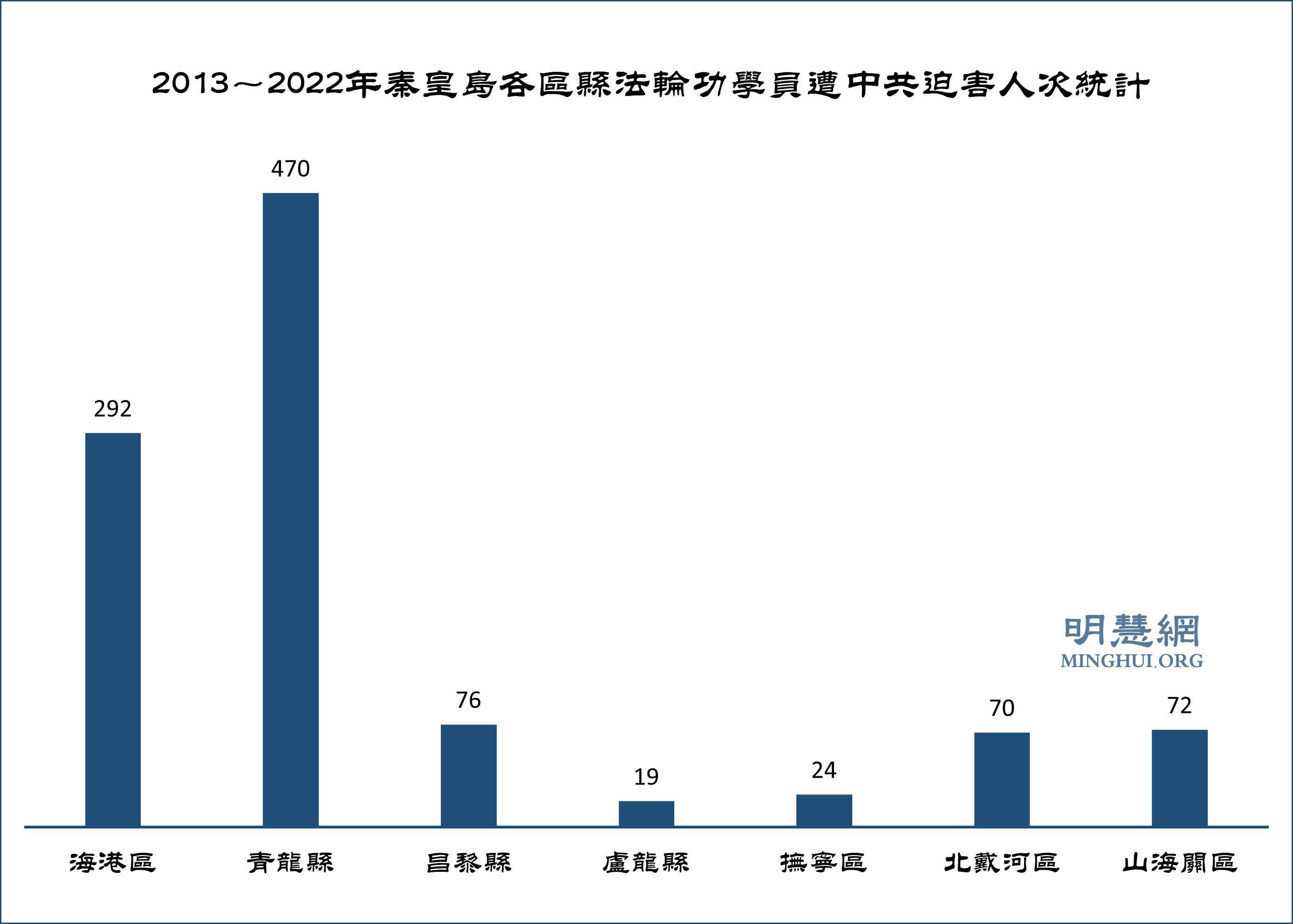 图2:2013~2022年秦皇岛各区县法轮功学员遭中共迫害人次统计