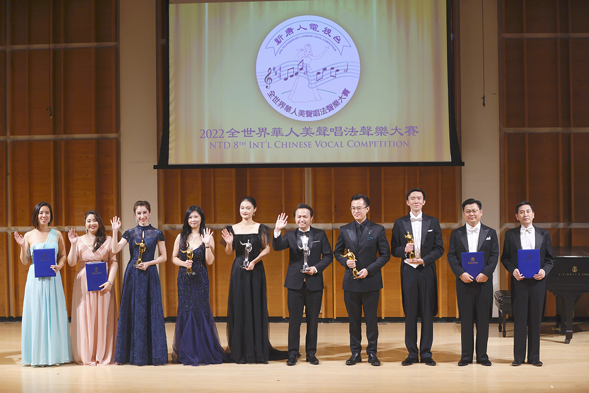 ![]() 图1:二零二二年十月二日,第八届新唐人“全世界华人美声唱法声乐大赛”决赛在纽约曼哈顿考夫曼音乐中心莫肯演奏厅(Merkin Hall of Kaufman Music Center)落幕。图为获奖选手合影。(大纪元) |