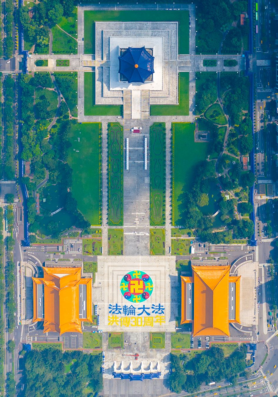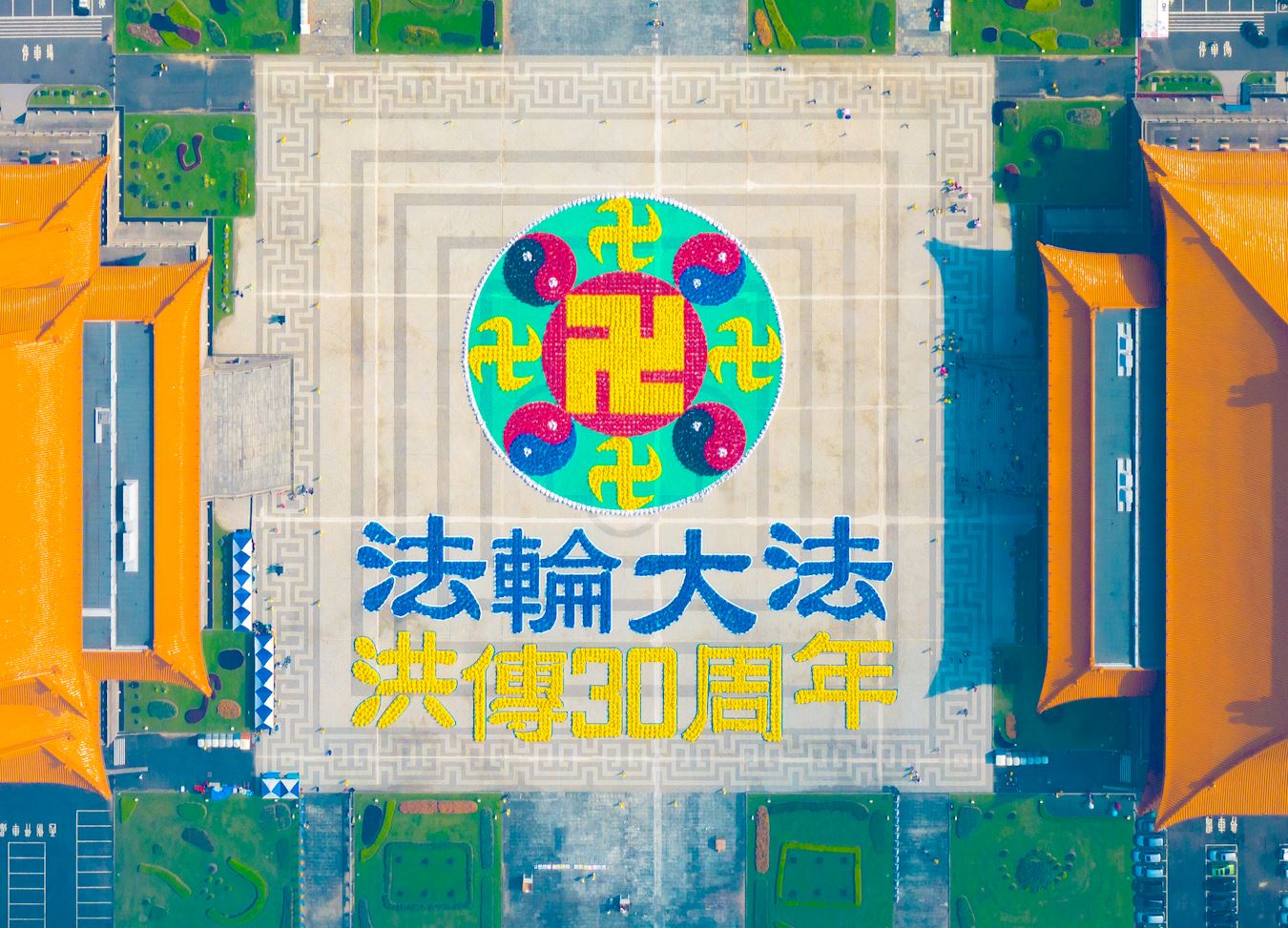 ![]() 图1~2:二零二二年十一月十二日,五千位法轮功学员排出“法轮图形”及“法轮大法洪传30周年”图像。(台湾法轮大法学会提供) |
