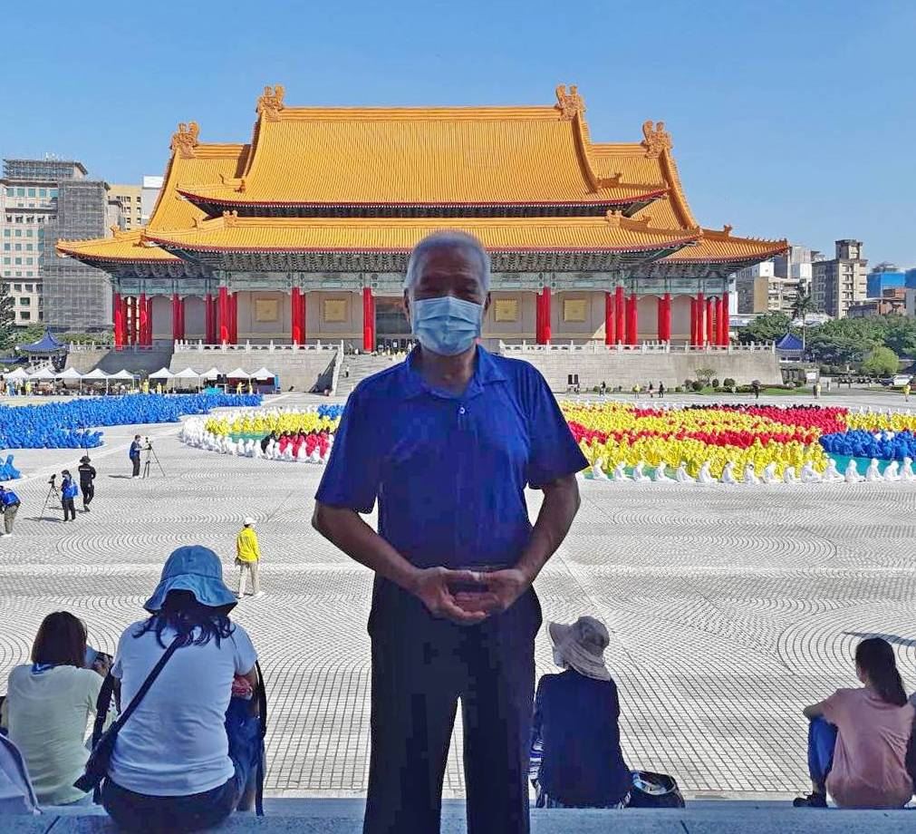 来自马来西亚的成先生带着女朋友,到自由广场观看排字活动,他说自己也是法轮功学员,知道排字的意义很殊胜,他以前在马来西亚参加过两次排字,台湾这个五千人的排字很壮观,所以特别带女朋友前来欣赏。女朋友赞同地点头说:“真的很漂亮,如同一幅鲜艳的画。”