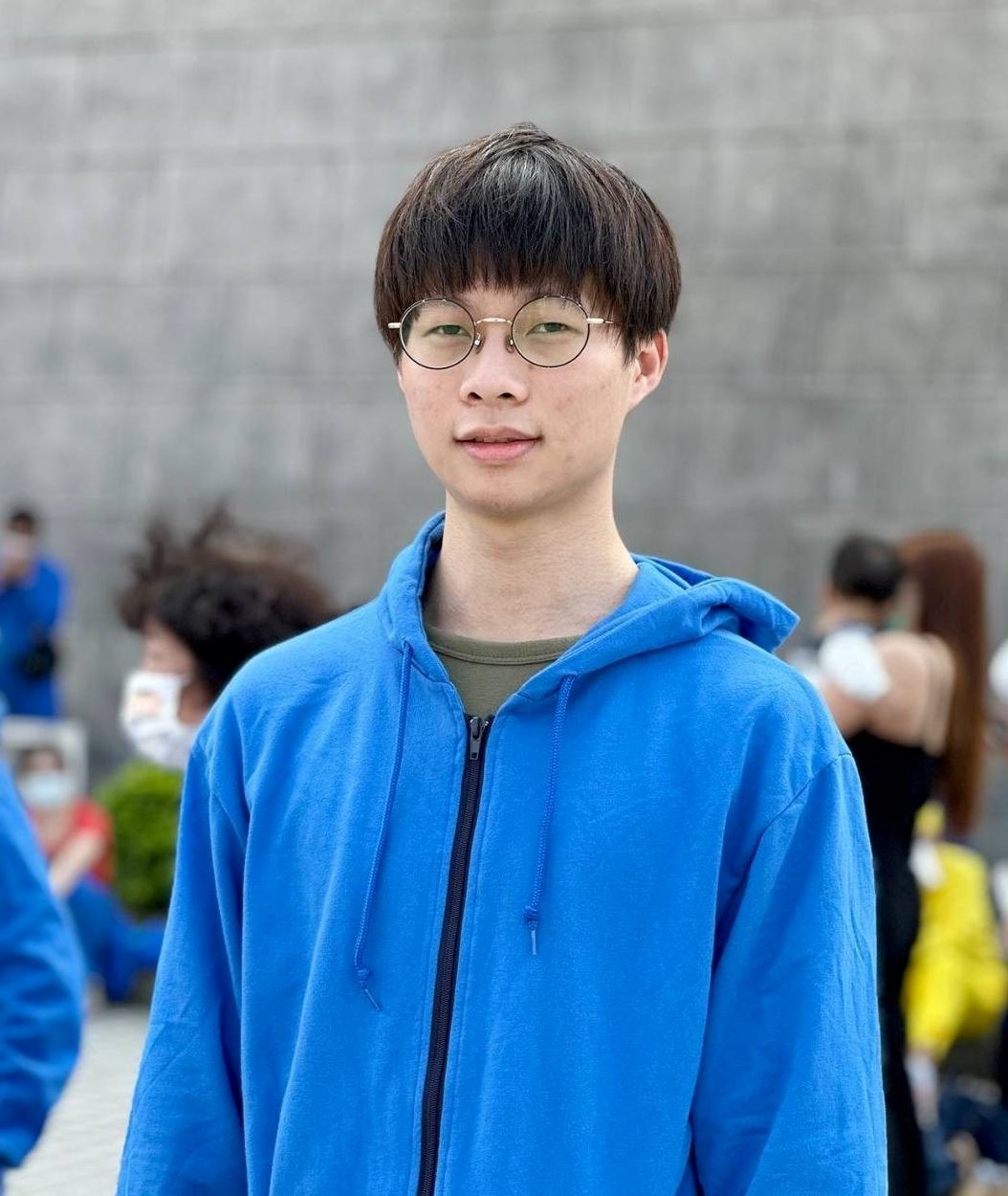 来自越南的法轮功学员杨梁信祖,目前是亚洲大学外文系学生,主修英文,再修法文,因要完成双主修课程而错失报名参加排字的时间,虽没能排字,但他的心与学员是在一起的,今天特别从台中上来支持排字活动。往年都有参加,今年他在外围观看,一种很特别的感受,也很感动。