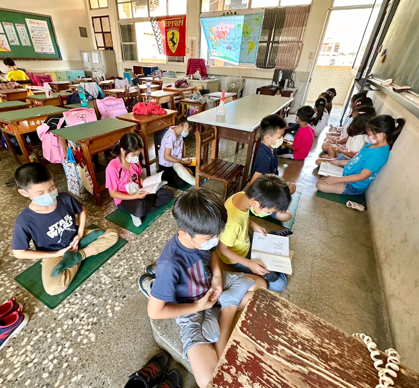 ![]() 图2:午休时王郁青的学生恭读《转法轮》《洪吟》,一旁的学生打坐。 |