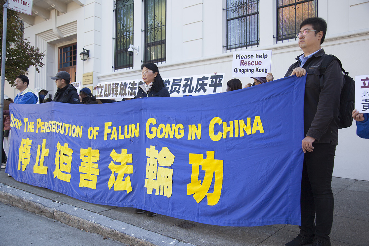 ![]() 图1~3:二零二二年十一月三日,旧金山湾区法轮功学员在旧金山中领馆前举行抗议集会,要求中共立即释放近日被绑架的法轮功学员孔庆平和黄永畅。 |