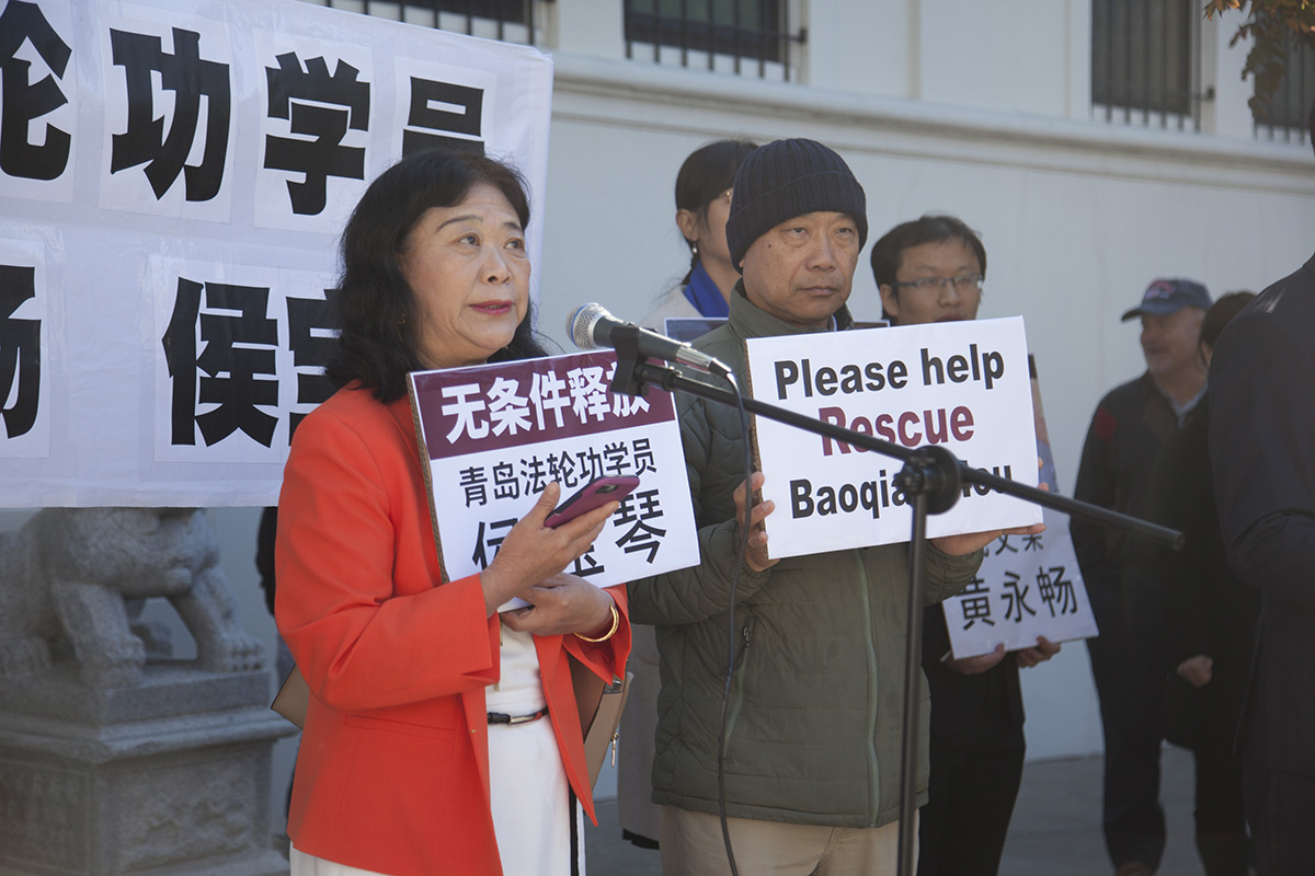 与此同时,湾区居民陈振波也在集会中,要求中共立即释放自己的朋友,被中共绑架、并非法判刑的法轮功学员侯宝琴。