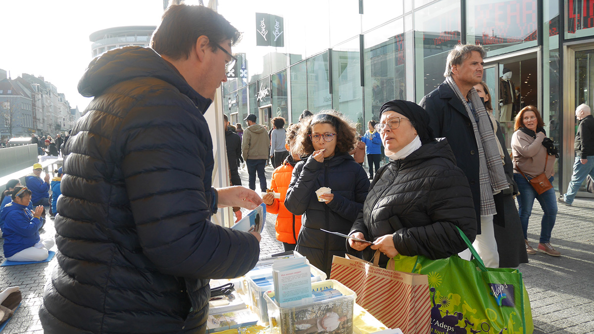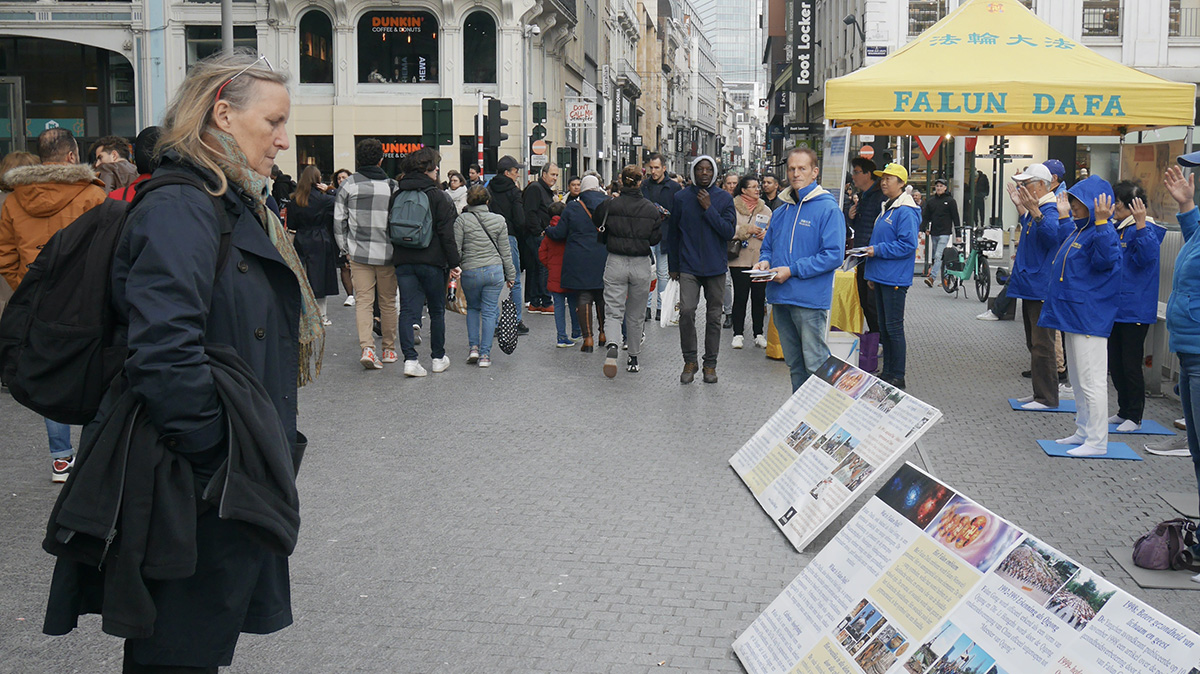【明慧网二零二二年十一月八日】(明慧记者比利时布鲁塞尔报道)二零二二年十一月五日,部分法轮大法学员在布鲁塞尔商业大街,向世人展示法轮大法功法并呼吁停止持续二十三年的迫害