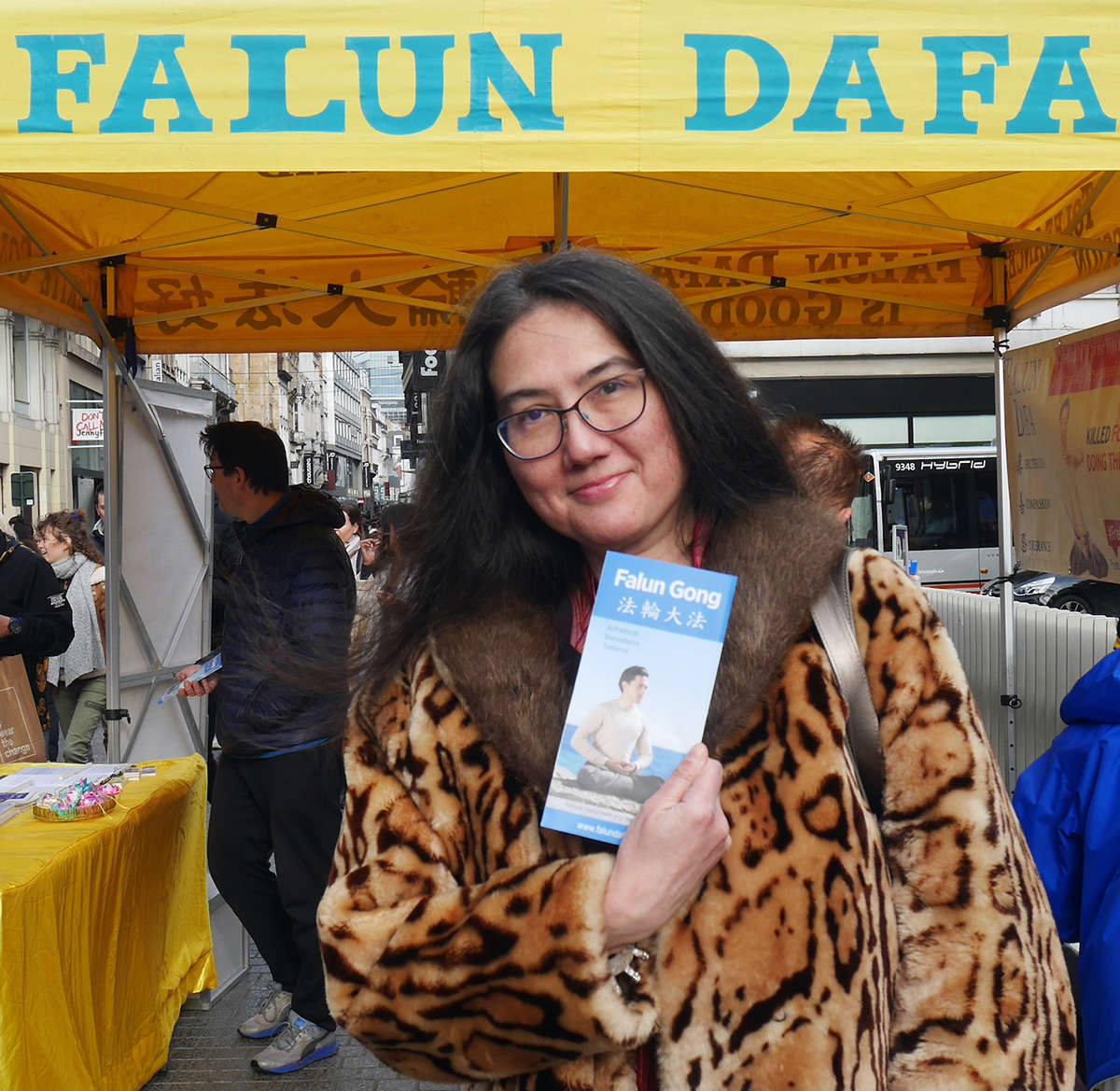 她告诉学员自己是越南裔比利时人,祖母是华人。她听信佛的父母亲说法轮功很好。不仅强身健体有奇效,对人的精神层面也有帮助。