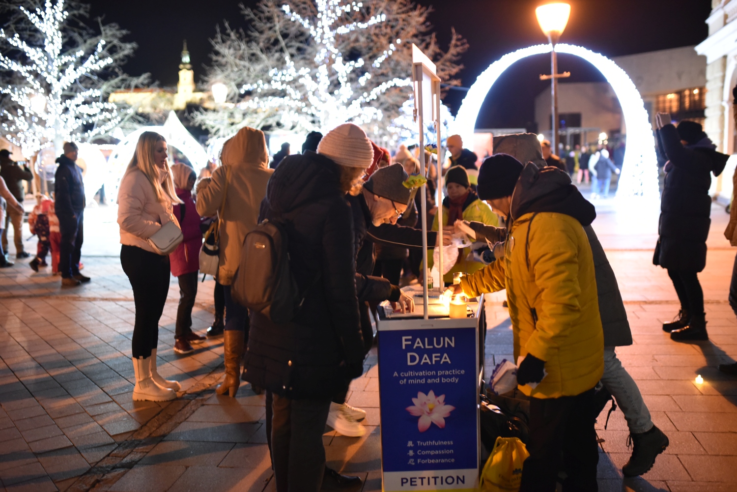【明慧网二零二二年十二月十三日】二零二二年十二月十日是世界人权日。当日下午,法轮功学员在位于斯洛伐克(Slovakia)尼特拉市(Nitra)的斯特凡尼克(Stefanik)大街上,举办了讲真相和反迫害征签活动,获得当地民众支持。