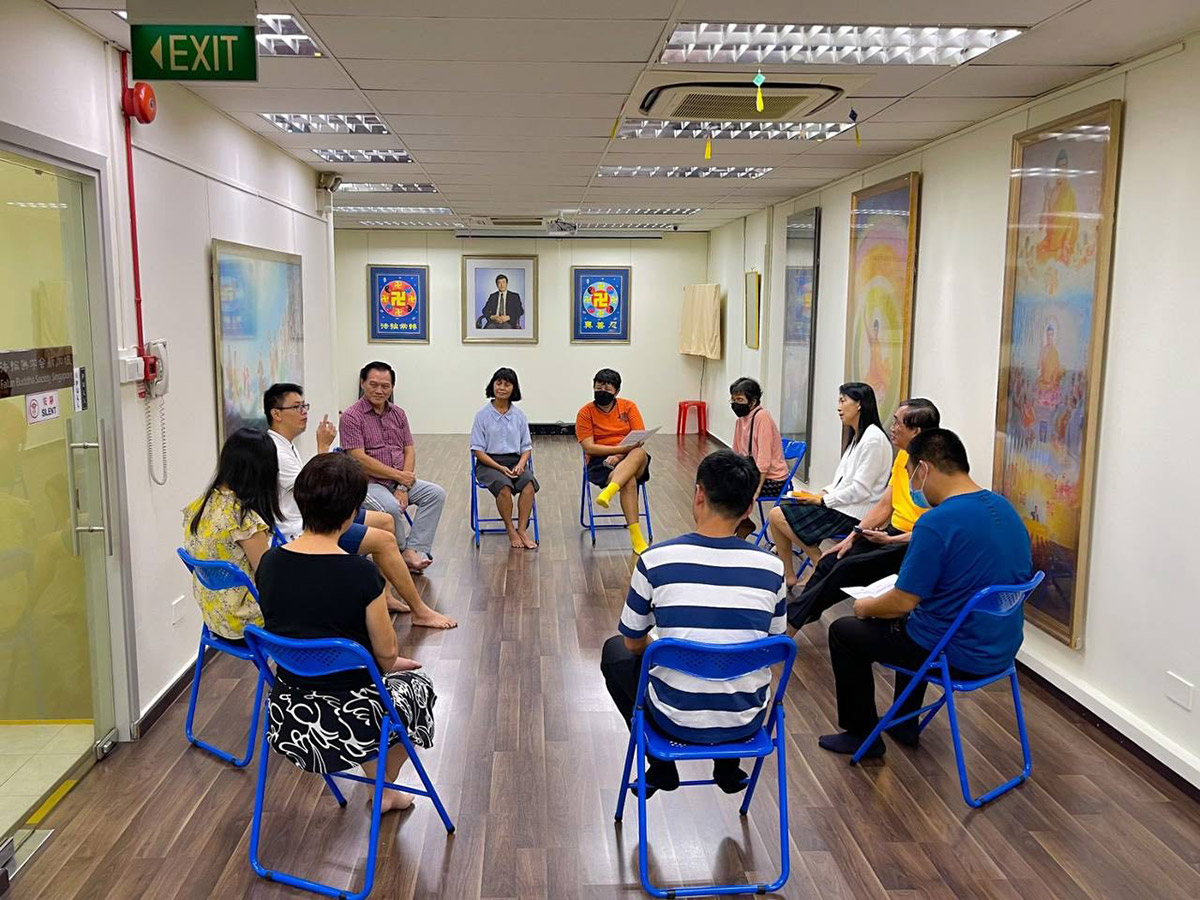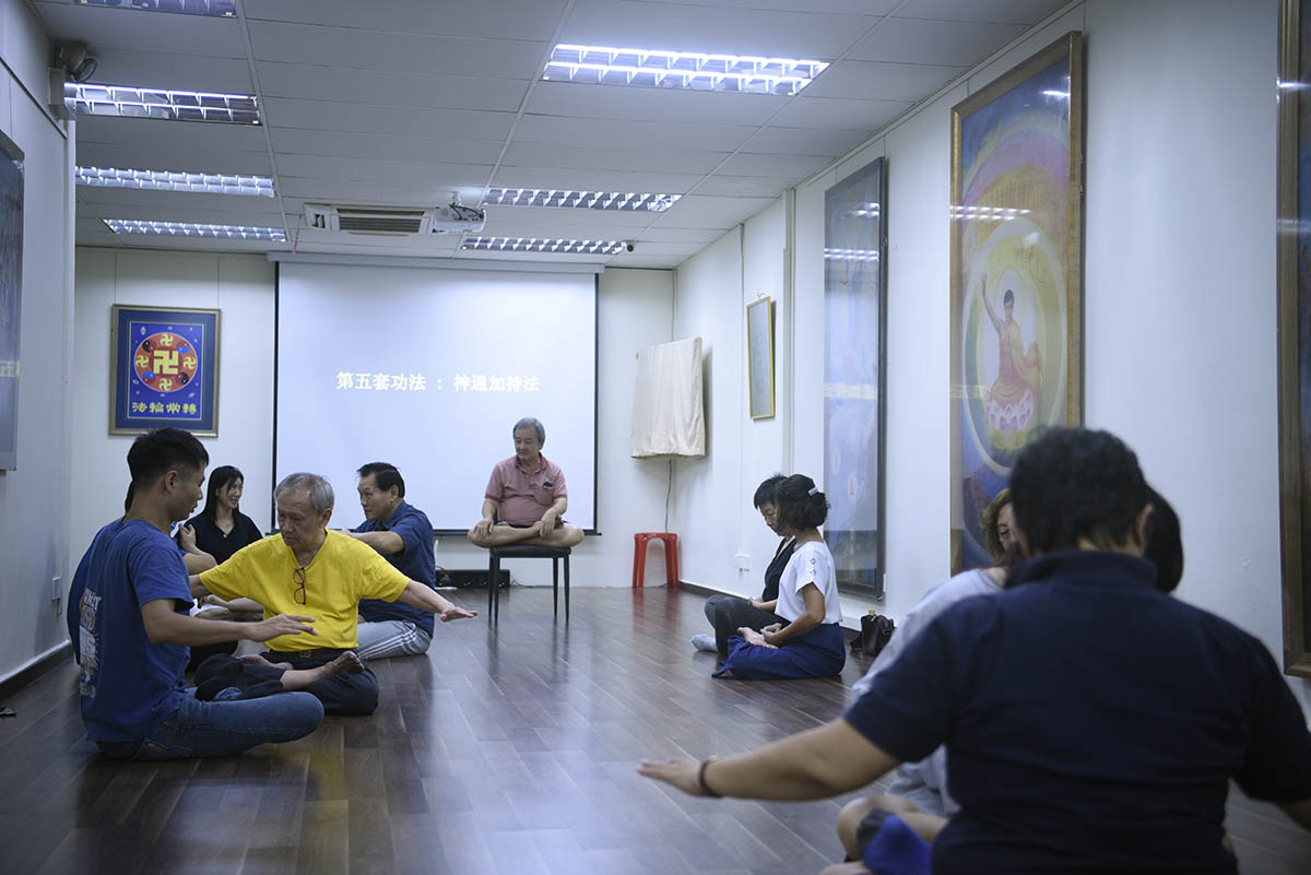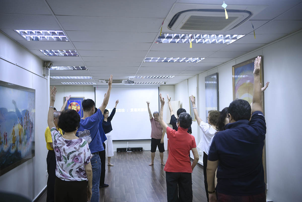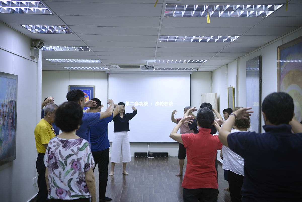 他来到新加坡以后在明慧网上找到了新加坡法轮大法佛学会的地址,因缘际会刚好赶上了九天班。他说在中国没有开放的炼功环境,自己的炼功动作很多也不标准,这次参加九天班他的炼功动作得到了纠正。