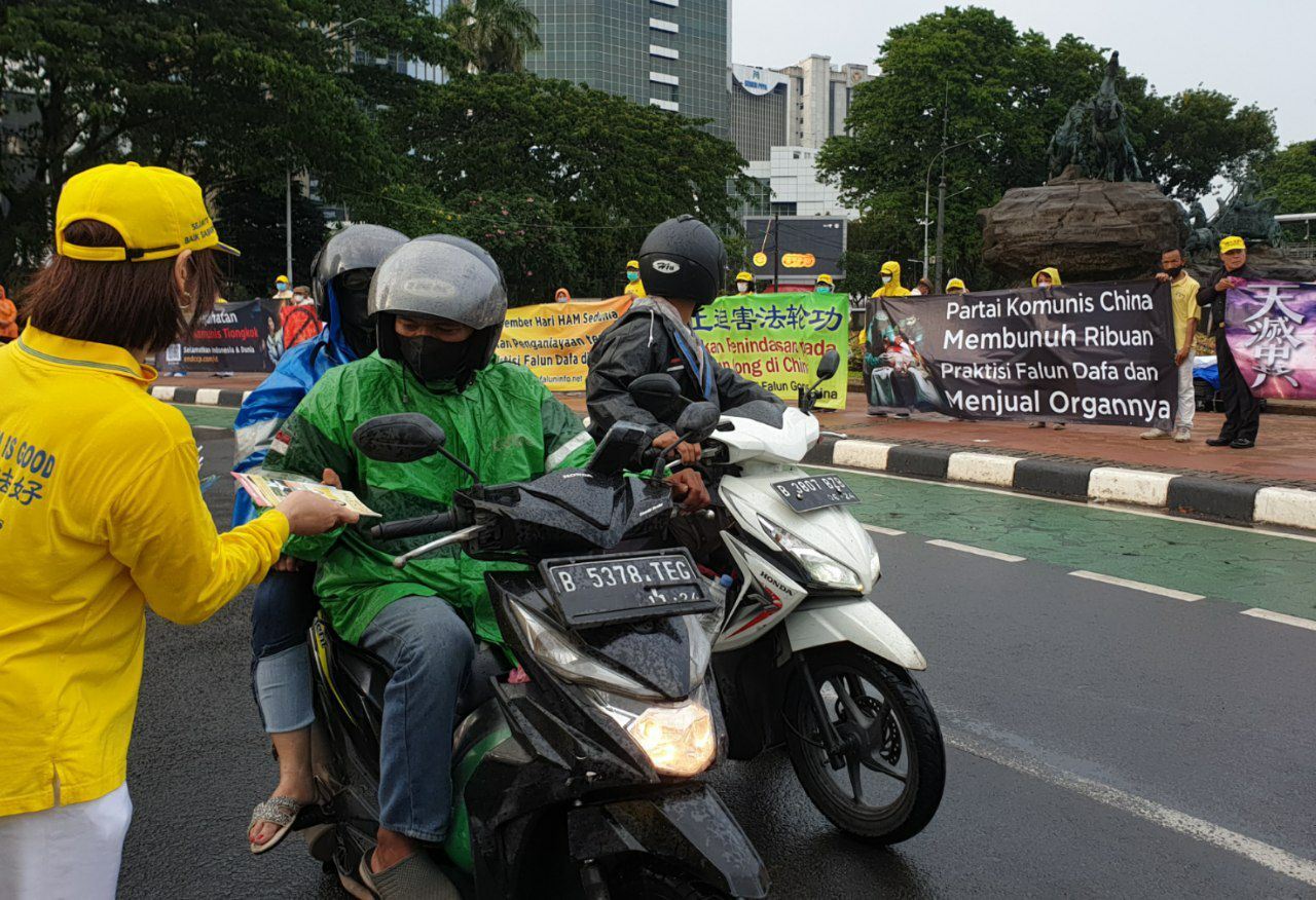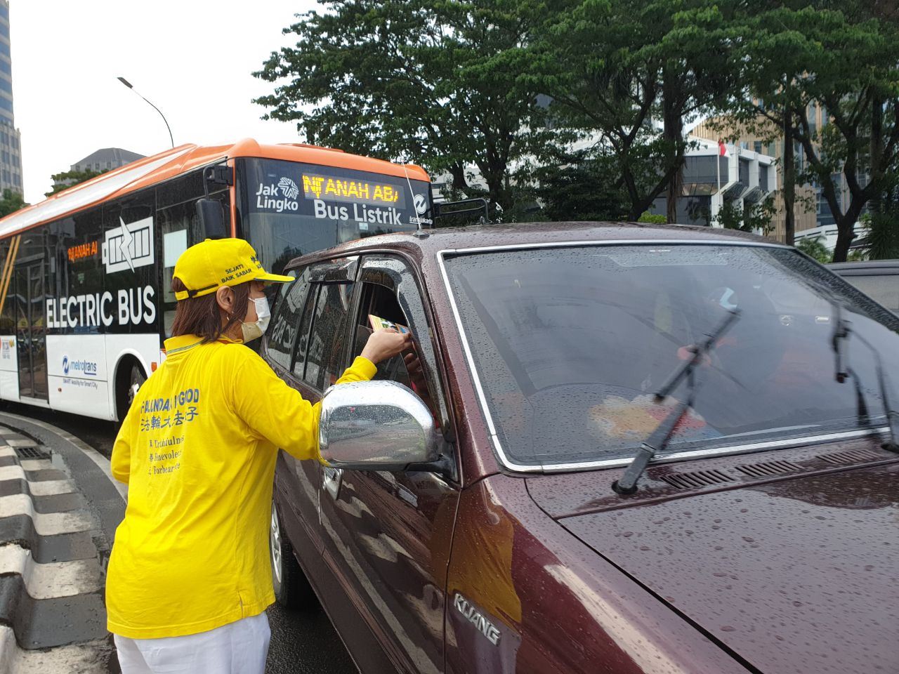 【明慧网二零二二年十二月二十一日】二零二二年十二月十七日周六下午,法轮功学员在雅加达商务区举行和平活动,拉开横幅呼吁中共立即停止已延续二十三年的对中国法轮功的迫害