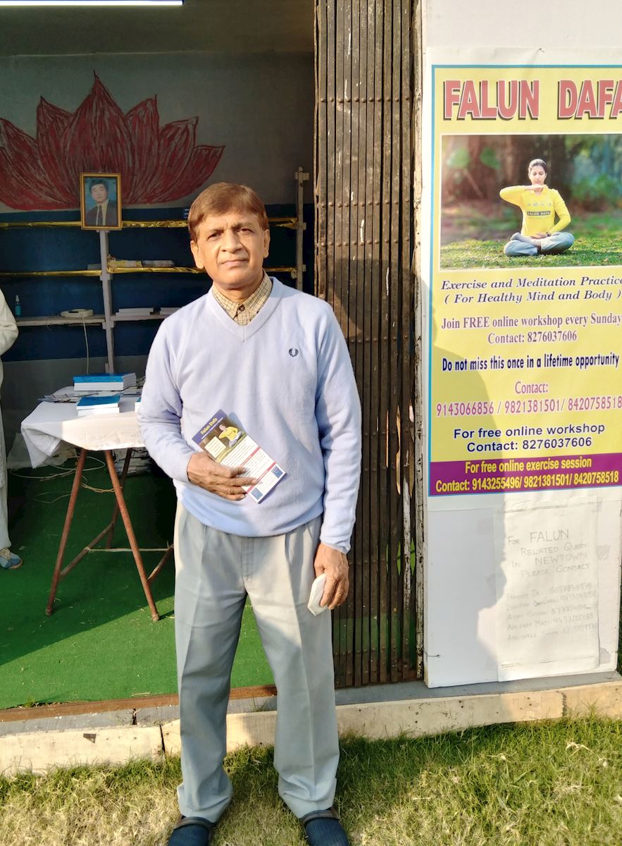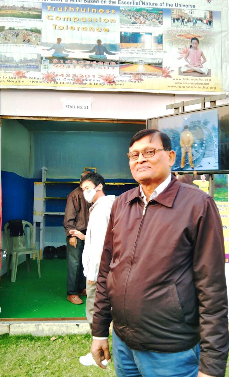也有不少参观书展的有缘人,接触到法轮功后开始修炼了。库马尔·德先生(Prodyut Kumar De)就是其中一位。德先生是退休会计师,他在二零二零年一月的新镇书展上购买了法轮功书籍,并开始修炼。修炼后,困扰他多年的痼疾奇迹般的消失了。