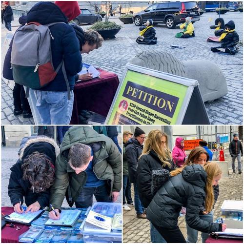 许多人都主动签名支持法轮功,并感谢法轮功学员在此举办和平理性的反迫害活动,让他们有机会了解了法轮功以及在中国还在发生着的灭绝人性的迫害。