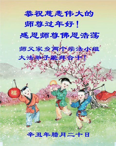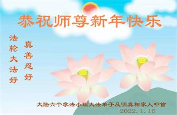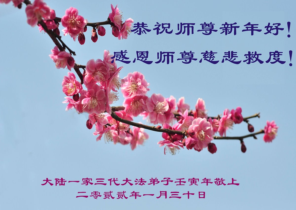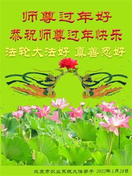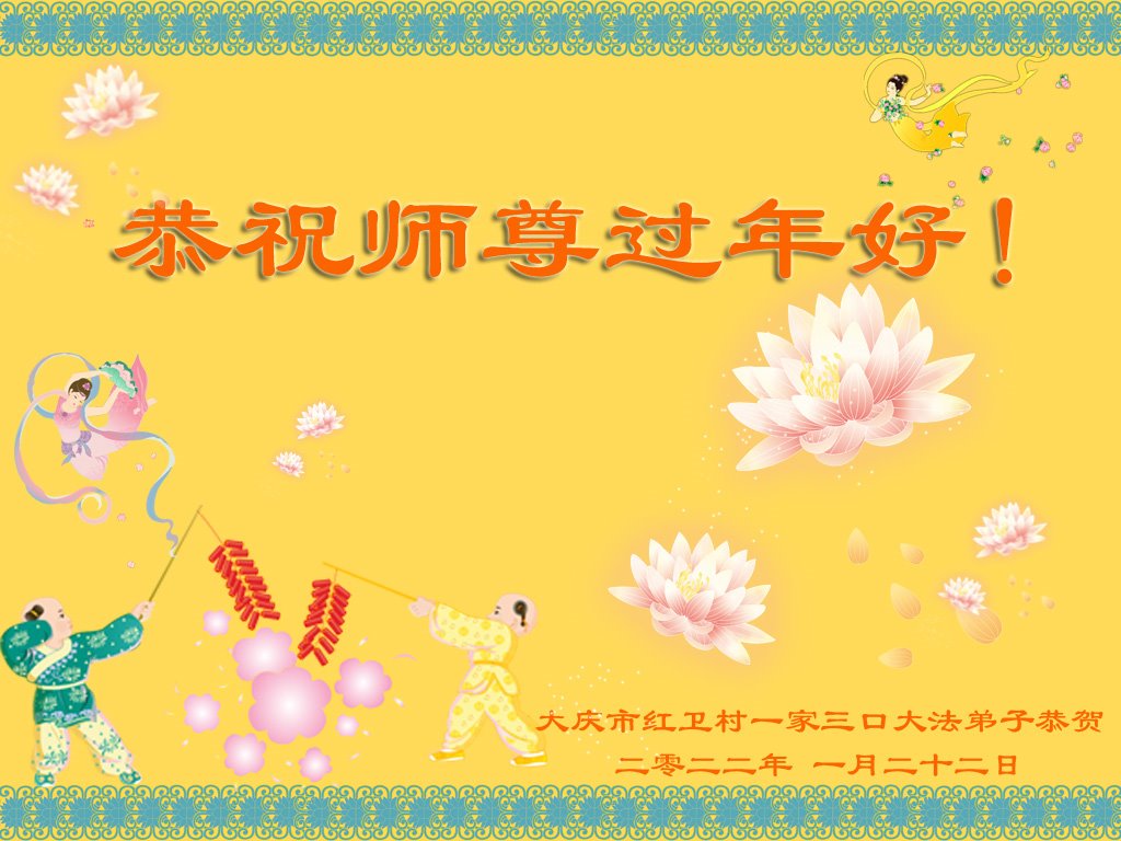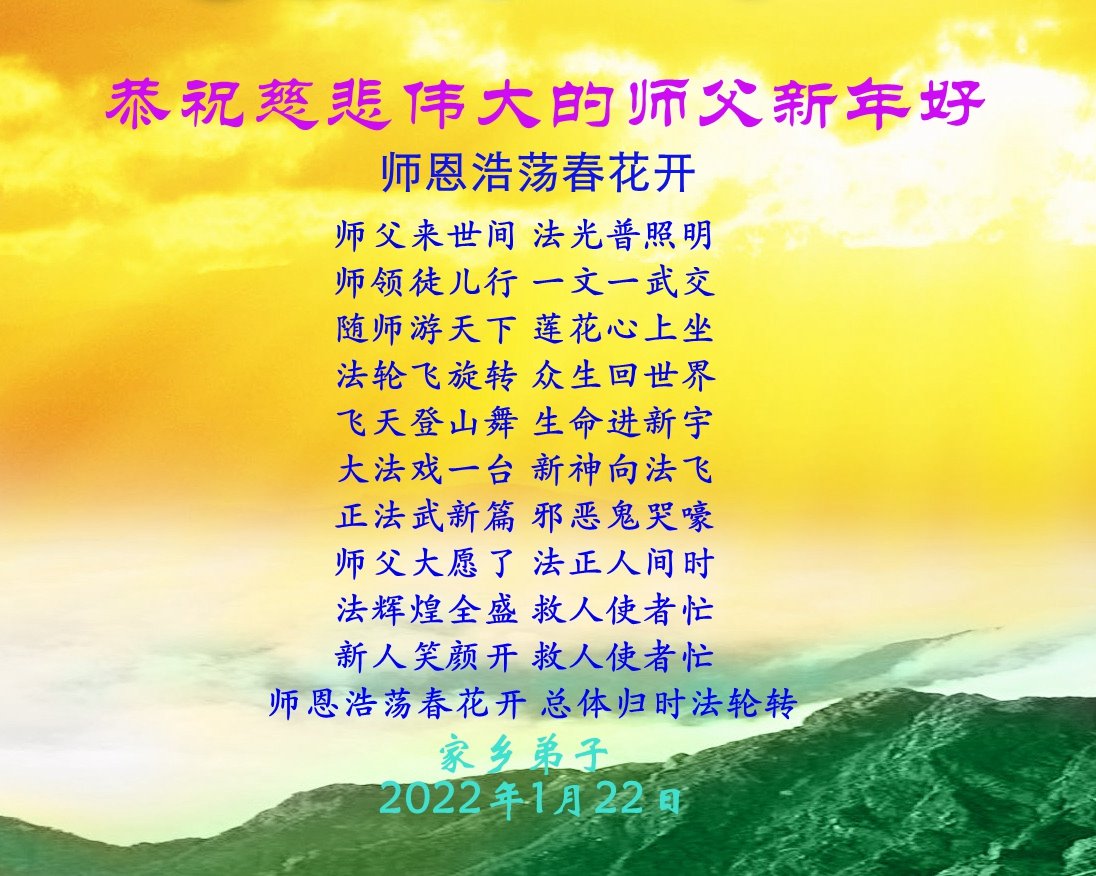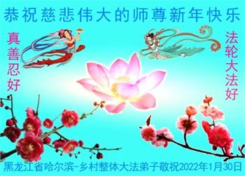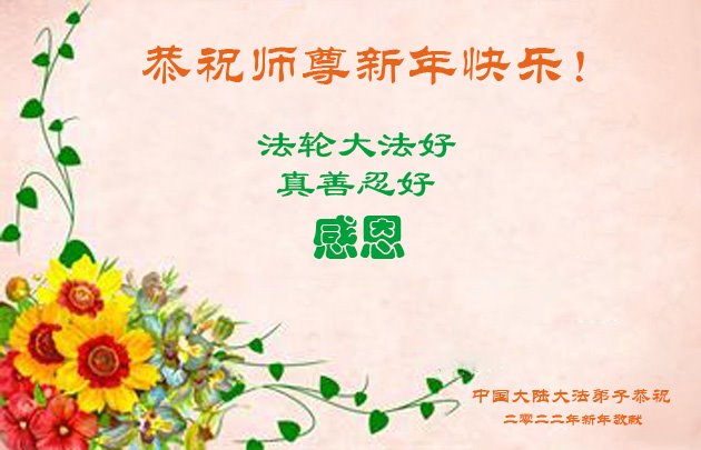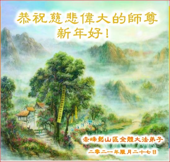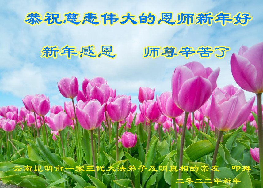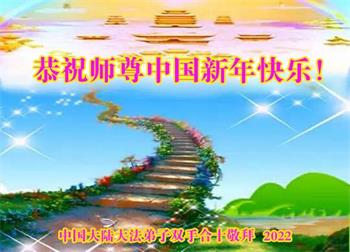 【明慧网二零二二年二月三日】(明慧网记者综合报道)值此中国传统新年之际,中国大陆各地大法弟子恭祝师尊新年好!大法弟子们在师尊的指引下正法修炼、助师正法近二十三年,把法轮大法好的真相传给千家万户,让更多的中国人走入新纪元。