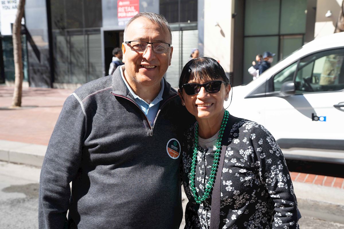 从秘鲁到美国旅游的卡洛斯·乔(Carlos Jo)和太太玛莉娅·乔(Maria Jo)非常喜爱法轮功学员的队伍。玛莉娅说:“法轮功的队伍太完美了,太出色了,我们刚到旧金山,这是我们第一次看到法轮功的队伍。”